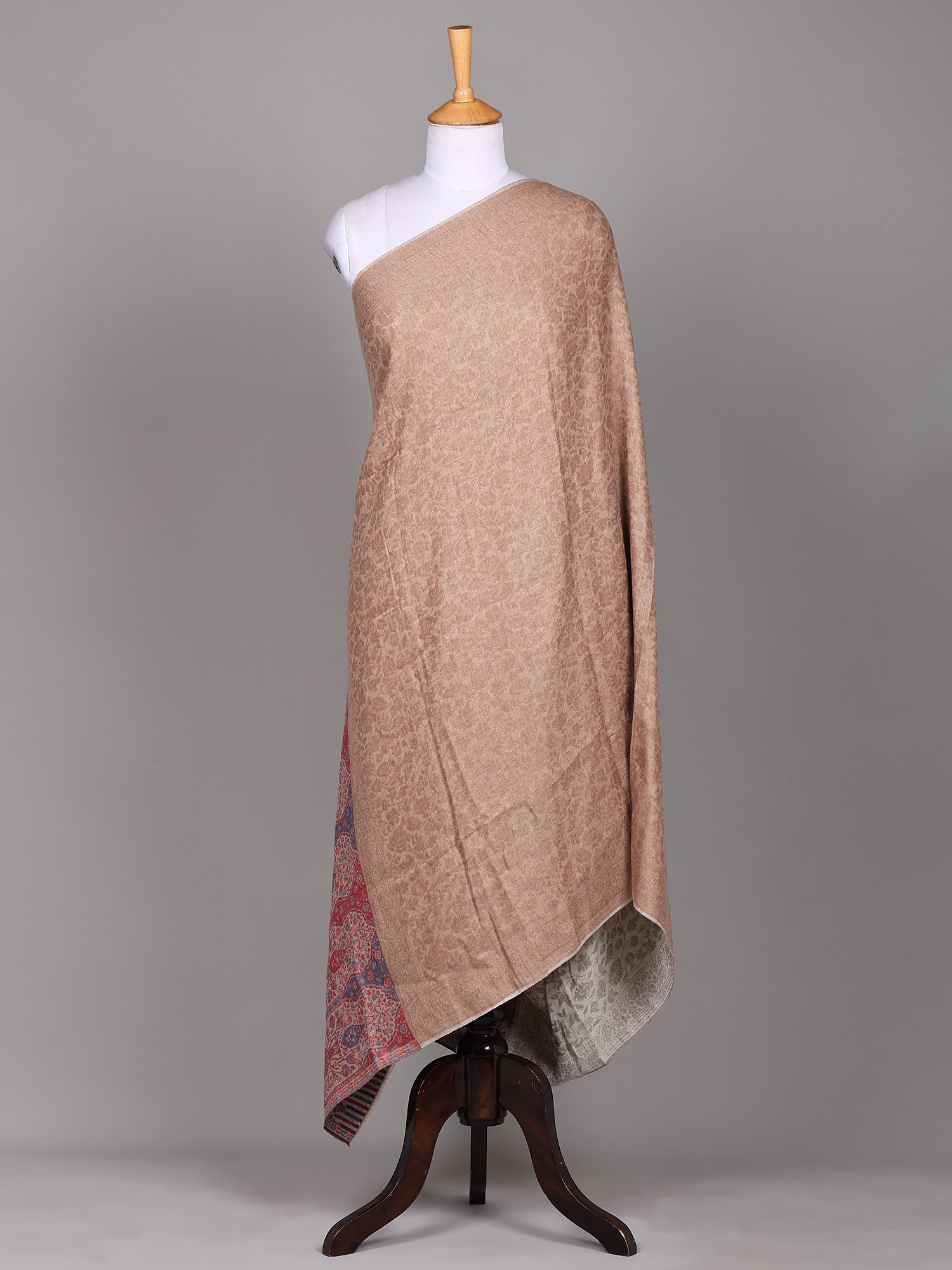 Dune-Brown Kani Pashmina Shawl From Kashmir with Kalamkari Hand Embroidery