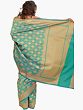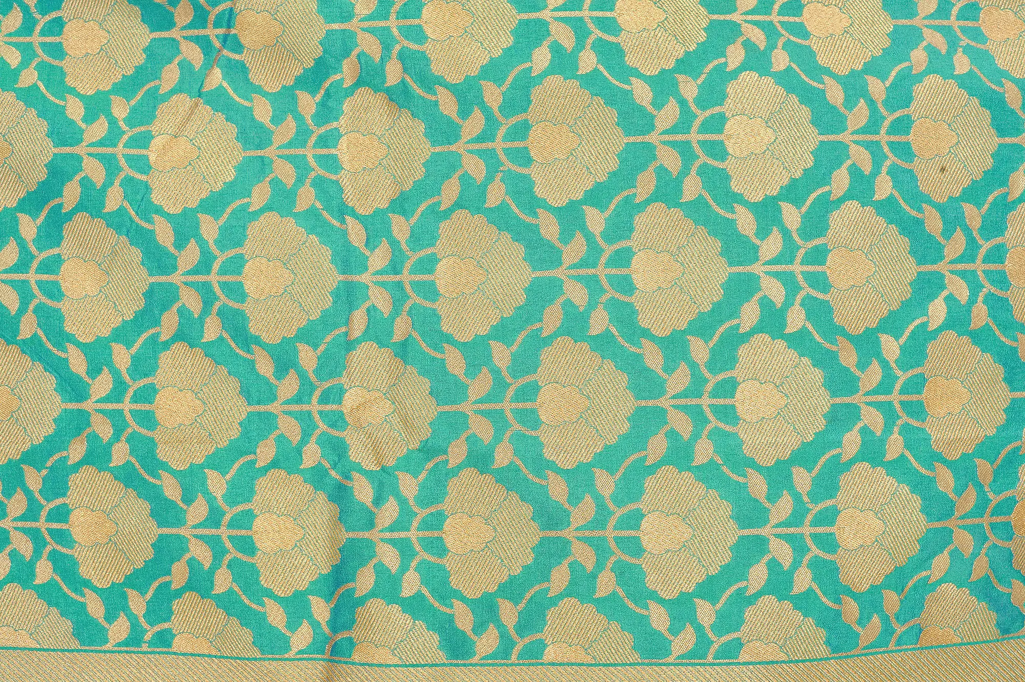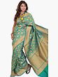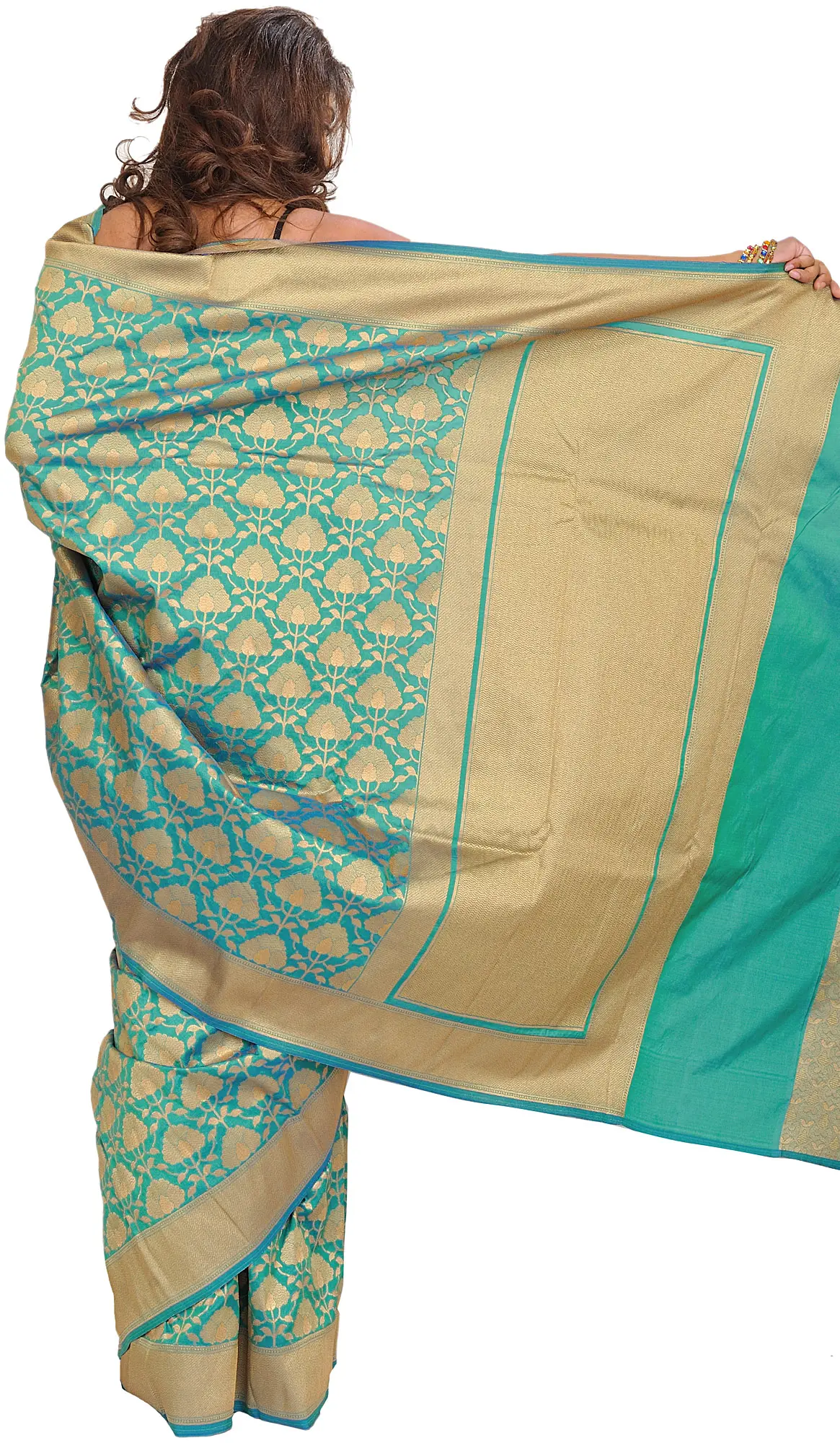 Winter-Green and Golden Banarasi Sari with Woven Flowers