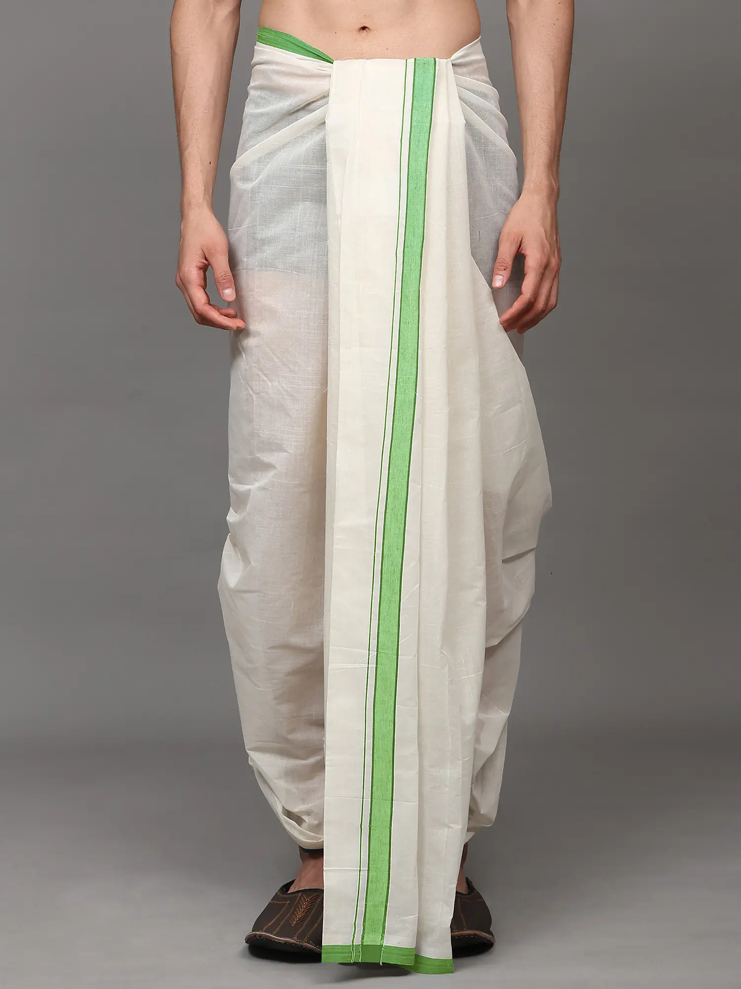 Star-White Zari Woven Border Drape Dhoti with with Angavastram Set