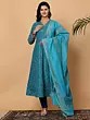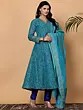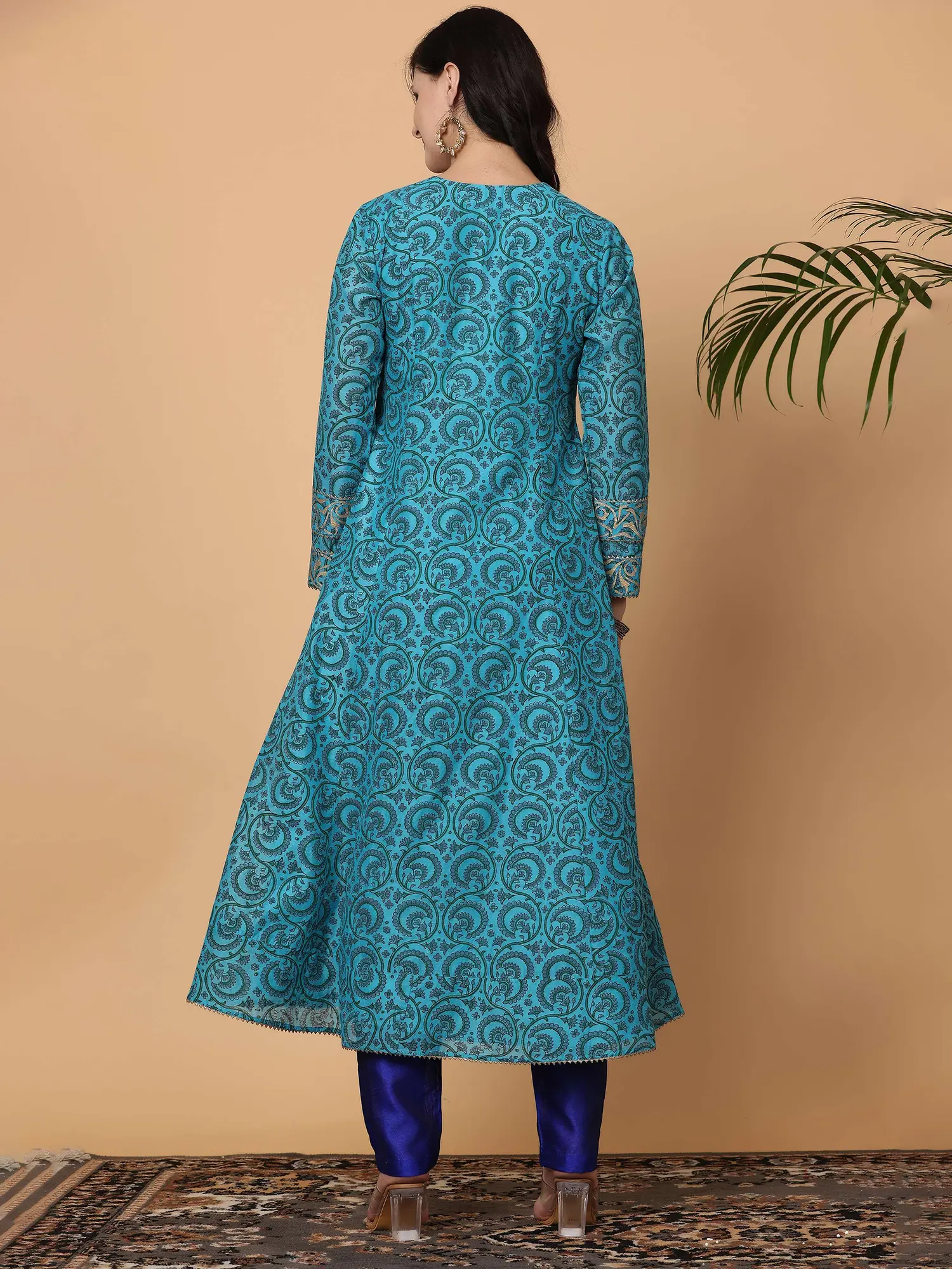Royal Blue Festive Wear Embroidered A Line Silk Kurta Set With Straight Pants For Women