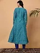 The eye-catching turquoise hue of this kurta serves as a captivating canvas for an intricate, all-over paisley print. Each motif is rendered in a contrasting deep blue, creating a visually striking and richly detailed pattern that exudes an artisanal feel. The classic paisley design, a symbol of prosperity and good fortune, adds a touch of cultural heritage to the modern silhouette. The V-neckline is subtly enhanced with delicate embroidery, framing the face and drawing attention to the graceful drape of the fabric. The flared cut of the kurta offers a flattering and feminine silhouette, flowing beautifully with every movement.
