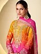 Royal Bandhani Charm Chinon Palazzo Suit With Intricate Thread Sequin Embroidery For Festive And Wedding Wear