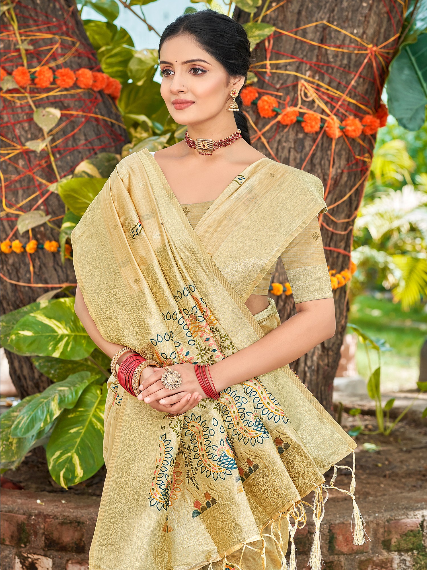 Sequins Weaving Silk Saree with Digital Print Blouse