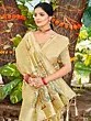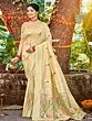 Beige Saree from Assam with Auspicious Woven Bootis and Florals on Border