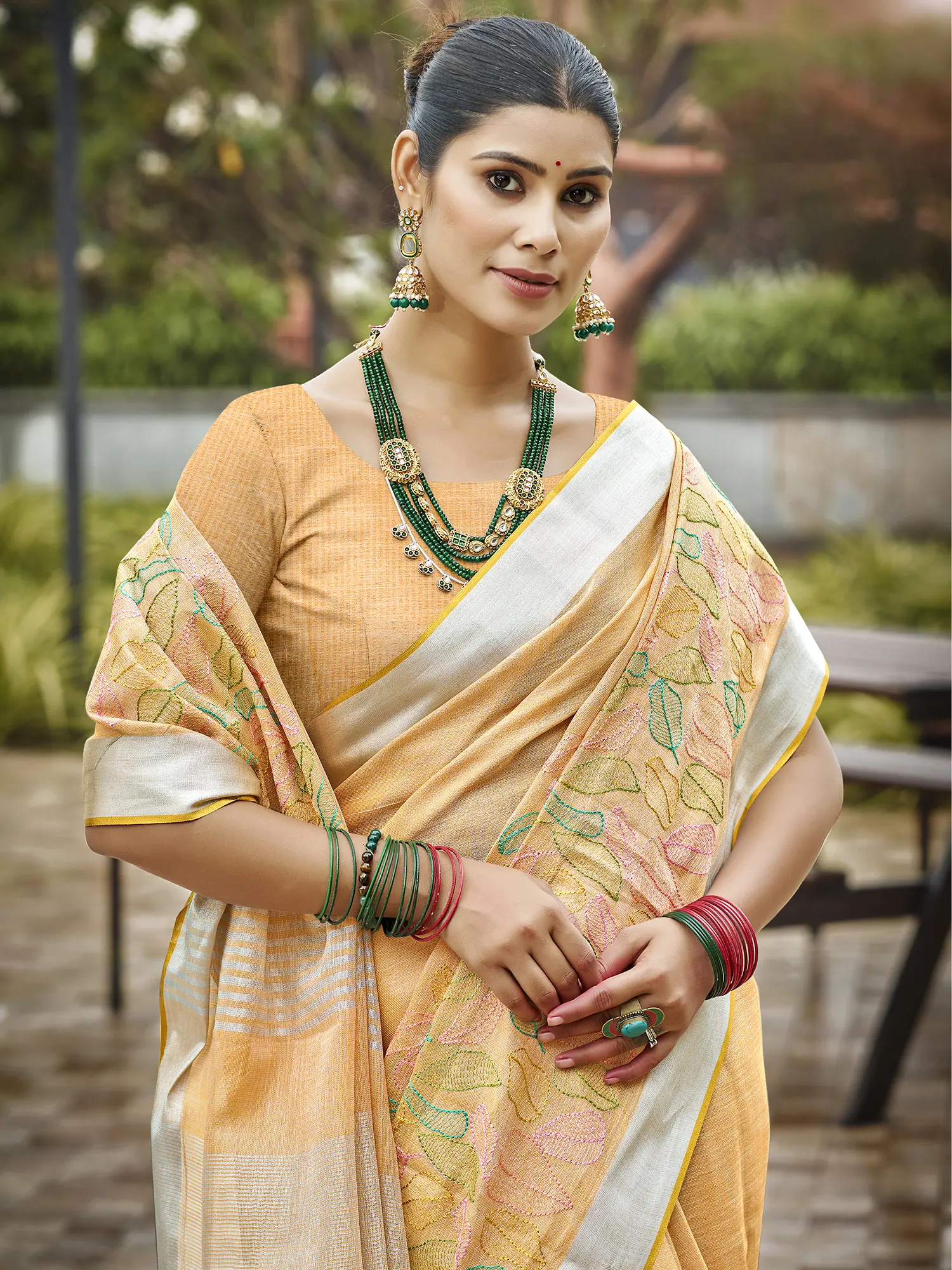 Embrace Effortless Elegance: The Delicate Leaf Motif Linen Saree