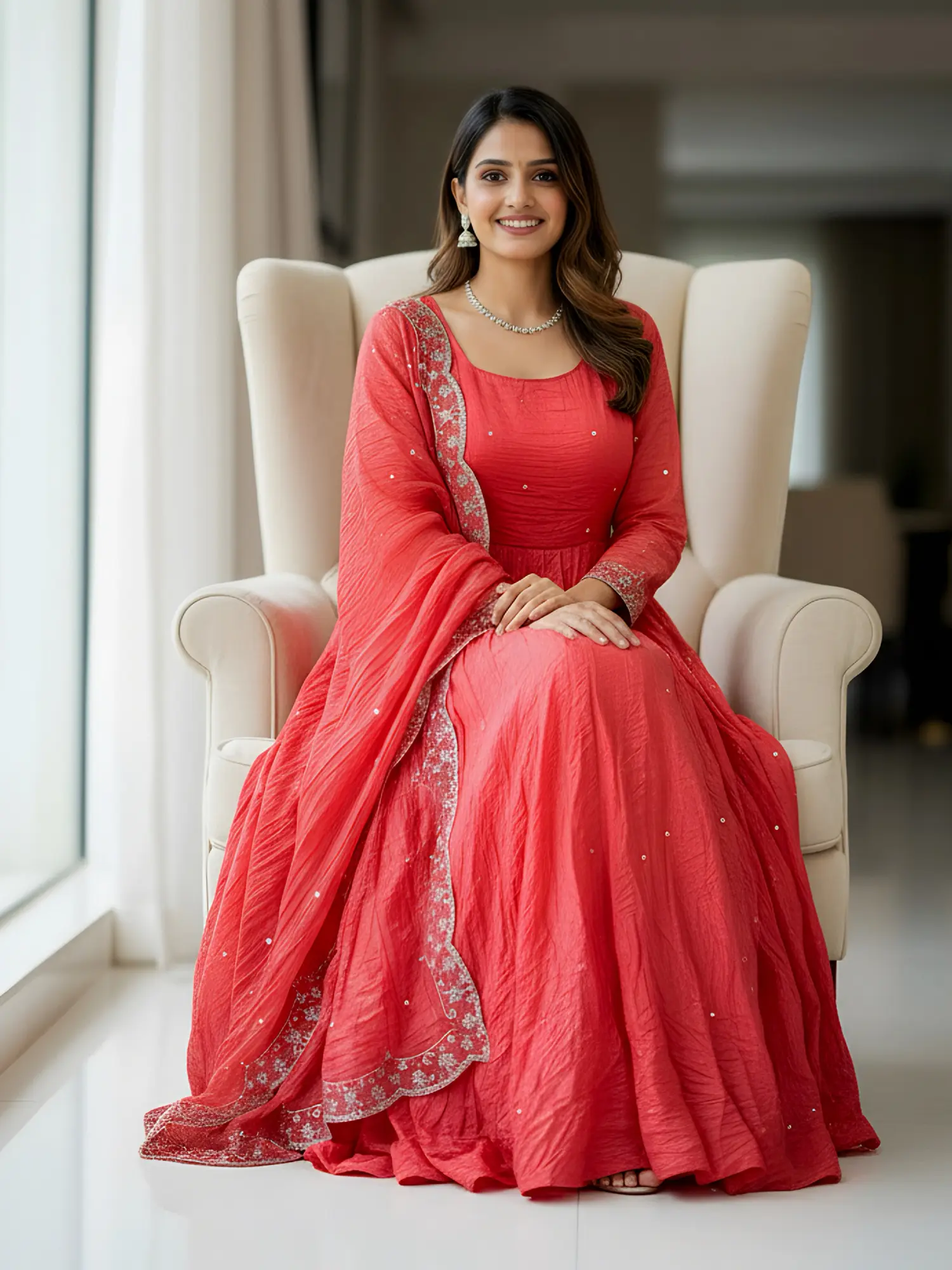 Women's Silk Gown Dupatta Set with Sequins & Zari Embroidery