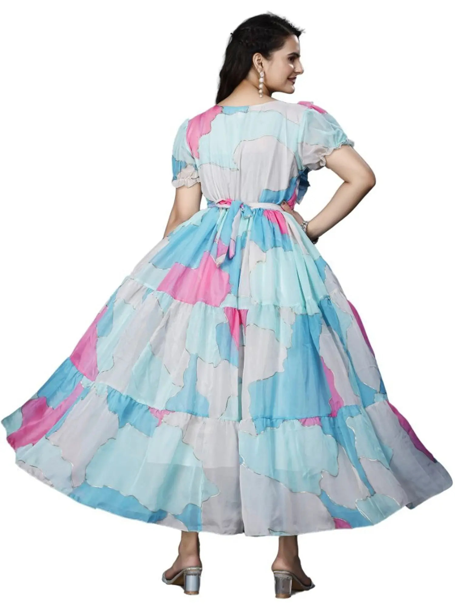 Faux Georgette Digital Print Women's Maxi Gown - Floor Length Flared Dress for Casual Beach & Resort Wear