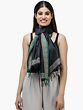 Ming-Green Jamawar Scarf from Amritsar with Wool Embroidery and Faux Pearls
