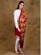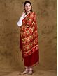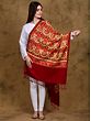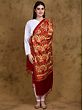 Red-Pear Pure Wool Stole with Aari Hand-Embroidered Birds and Flowers from Srinagar