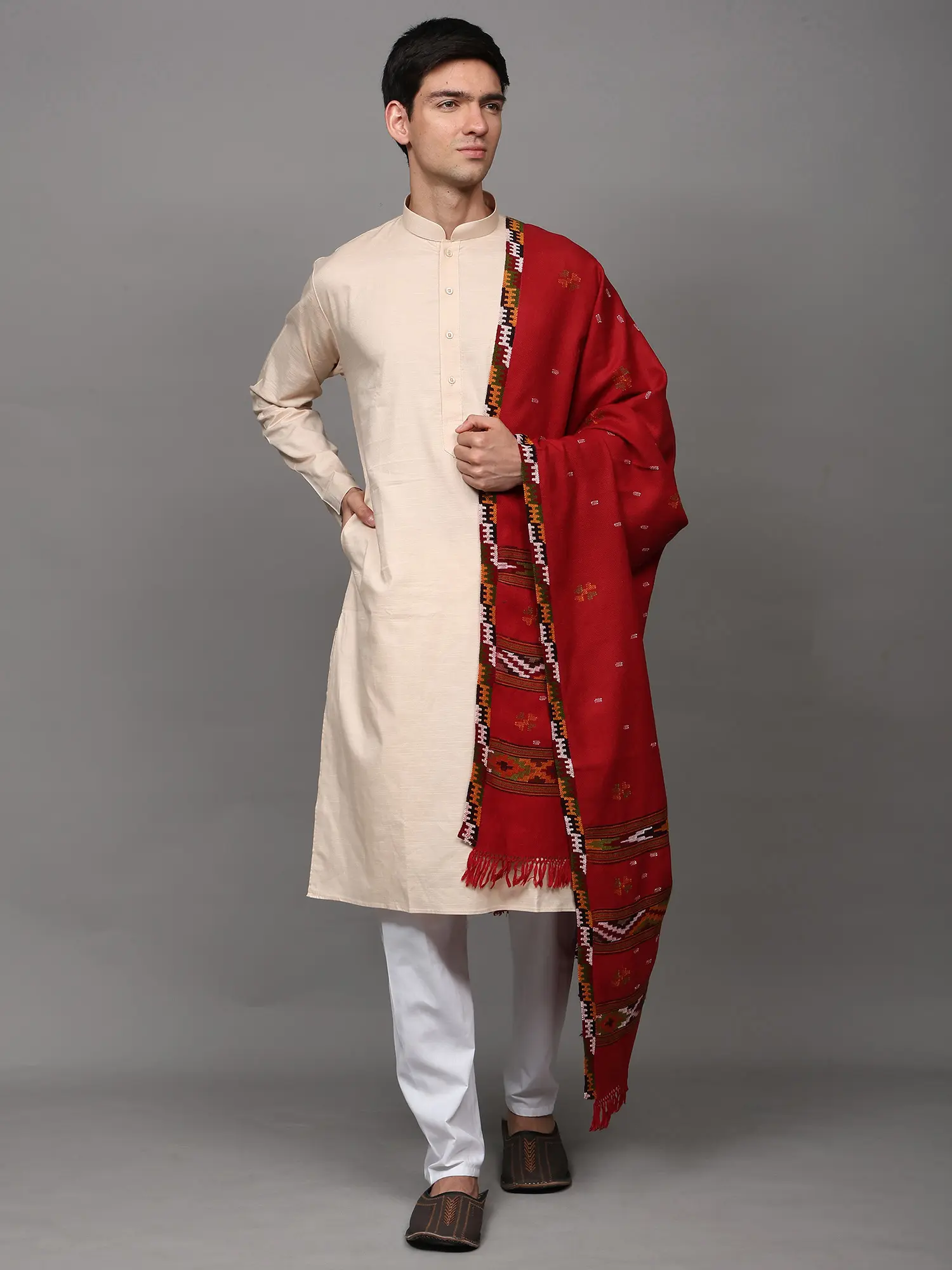 Ivory Plain Dushala (Lohi) for Men from Kullu