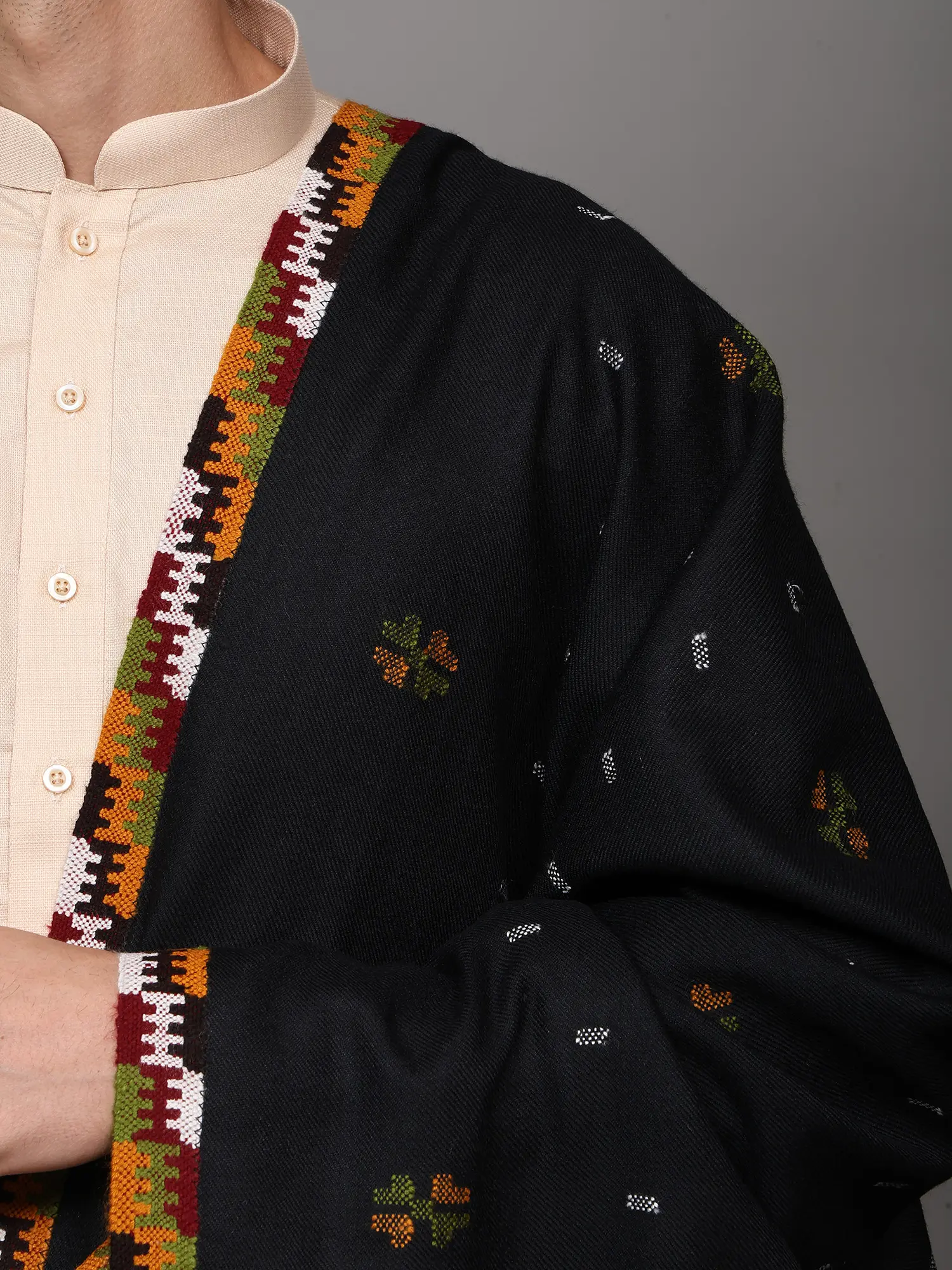 Woodland-Gray Kullu Palla Shawl with Kinnauri Woven Triple Border (Unisex)