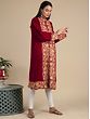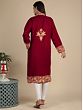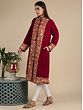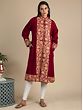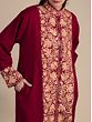 Indulge in the allure of Kashmiri craftsmanship without exquisite wool long jacket adorned with an all-over aari embroidered phool vail pattern. Imbued with the rich heritage of the region, each intricate stitch showcases the mastery of Kashmiri artisans, capturing the essence of timeless elegance. The luxurious wool fabric offers both warmth and sophistication, making it a versatile addition to your wardrobe.