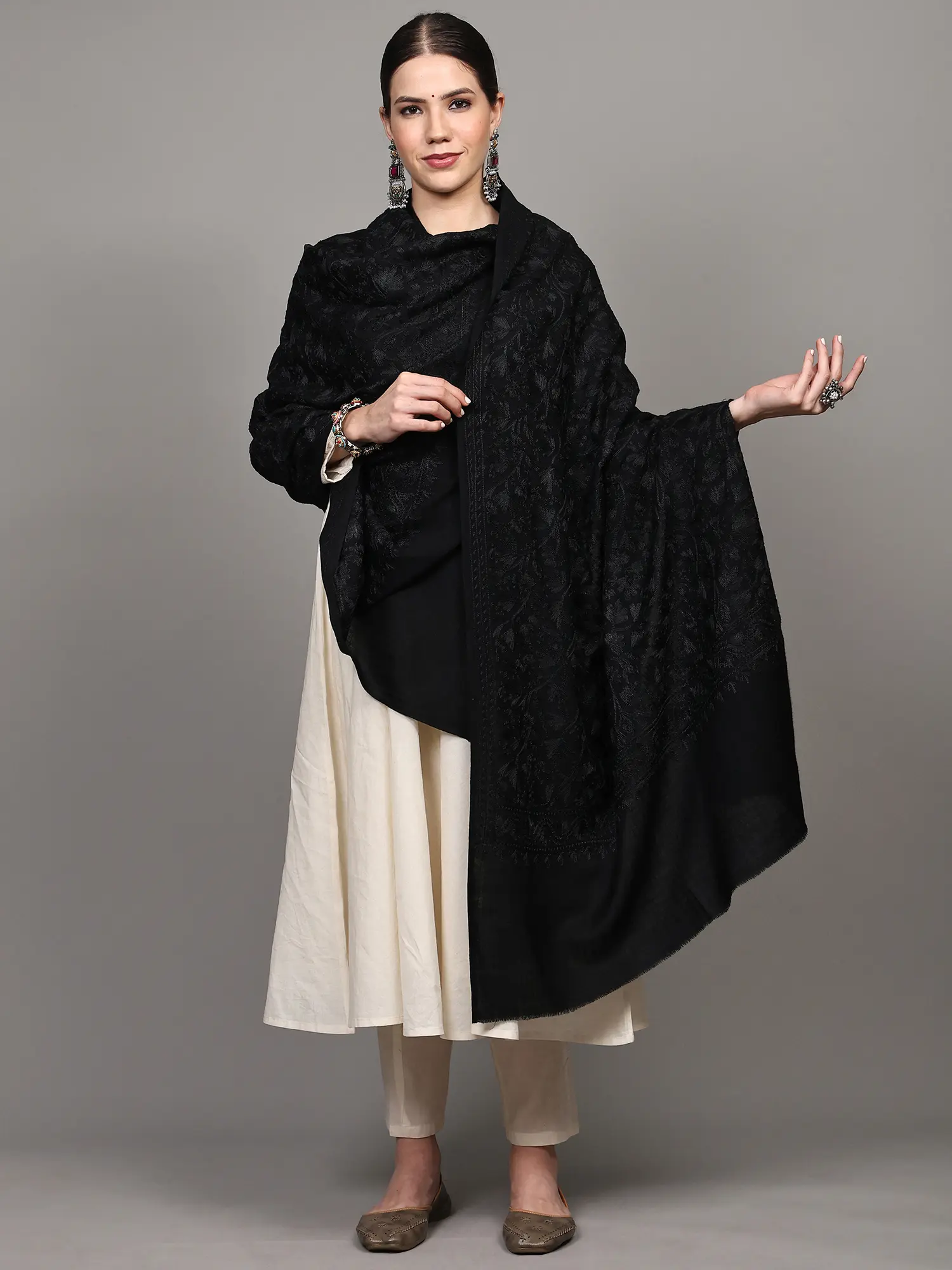 Pure Wool Shawl from Amritsar with Chain Stitch Embroidered Floral Jaal