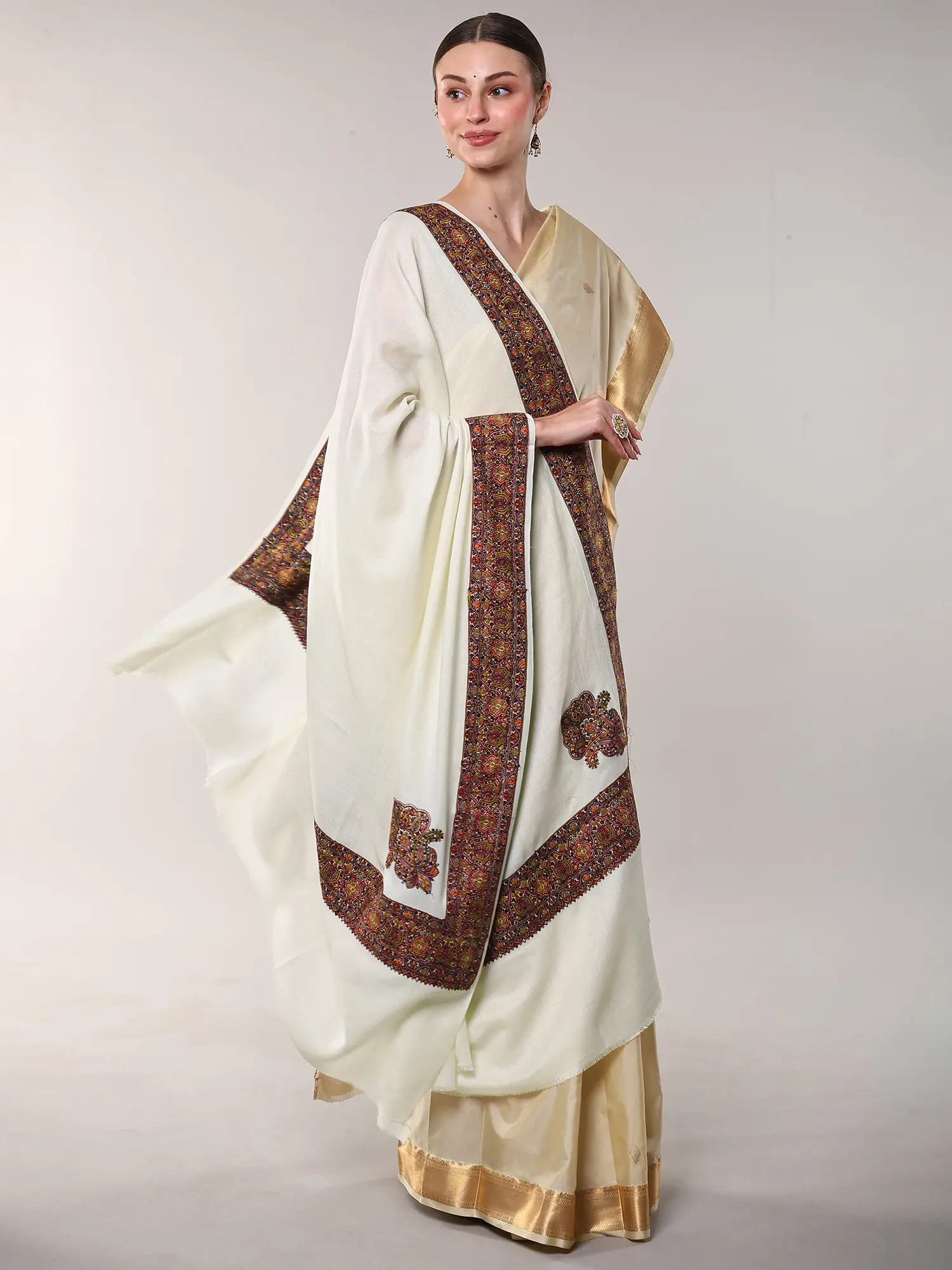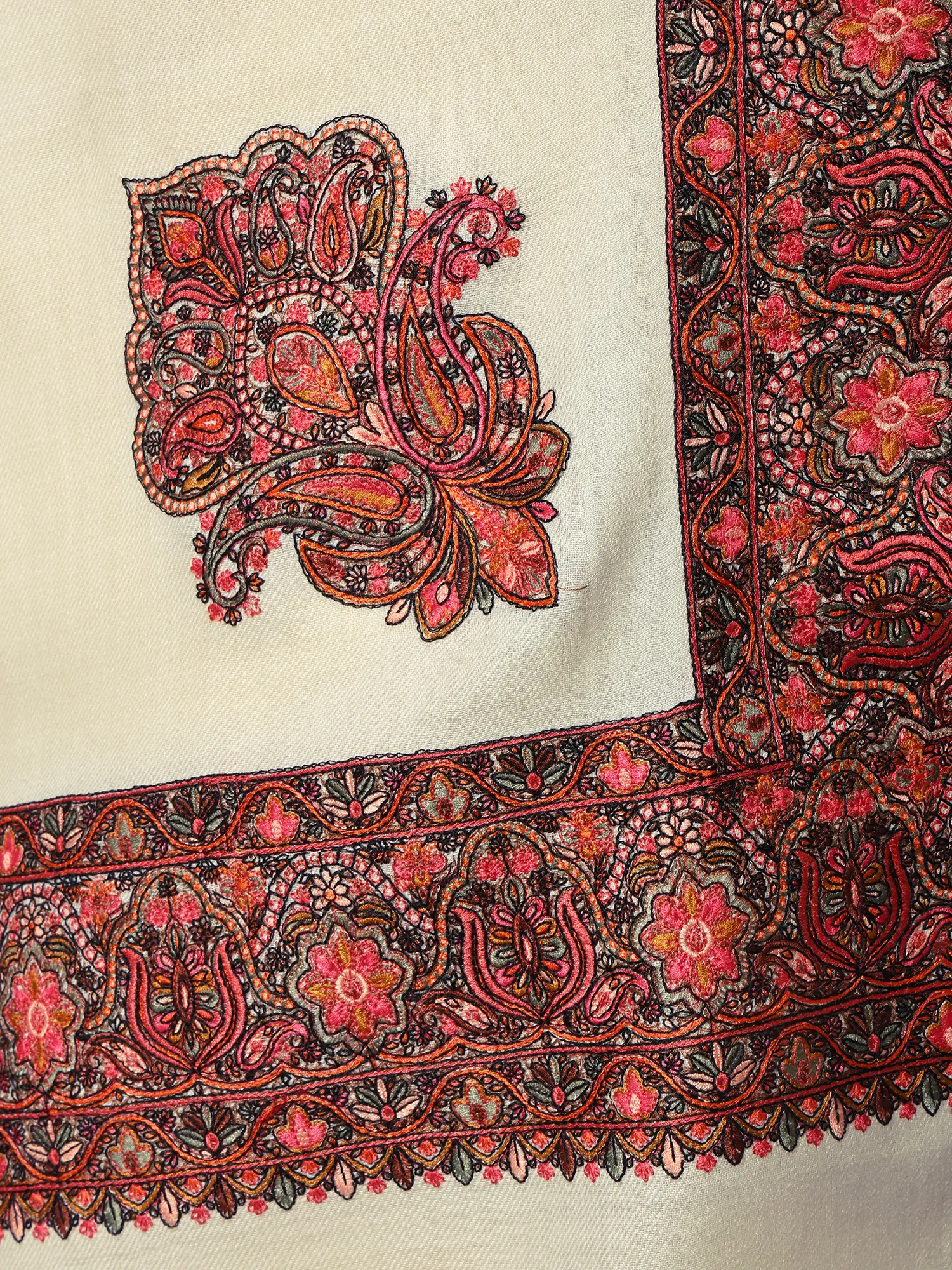 Aari Embroidered Wool Shawl from Amritsar with Paisleys Border