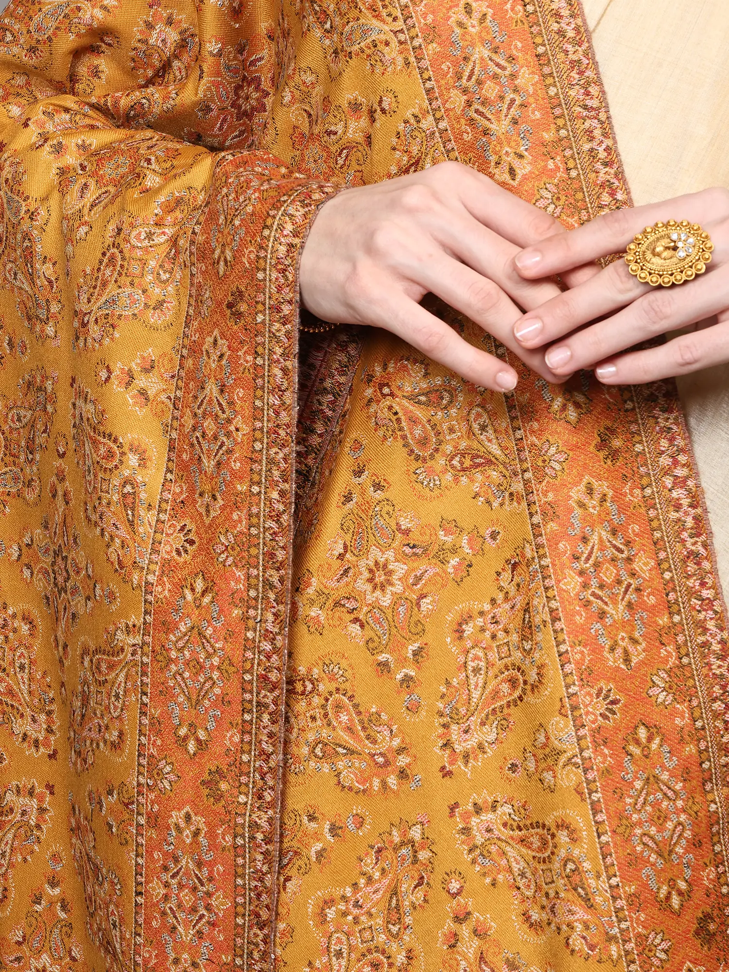 Amritsari Chain Stitch Satin Aari Embroidered Mughal Motif Pure Wool Shawl