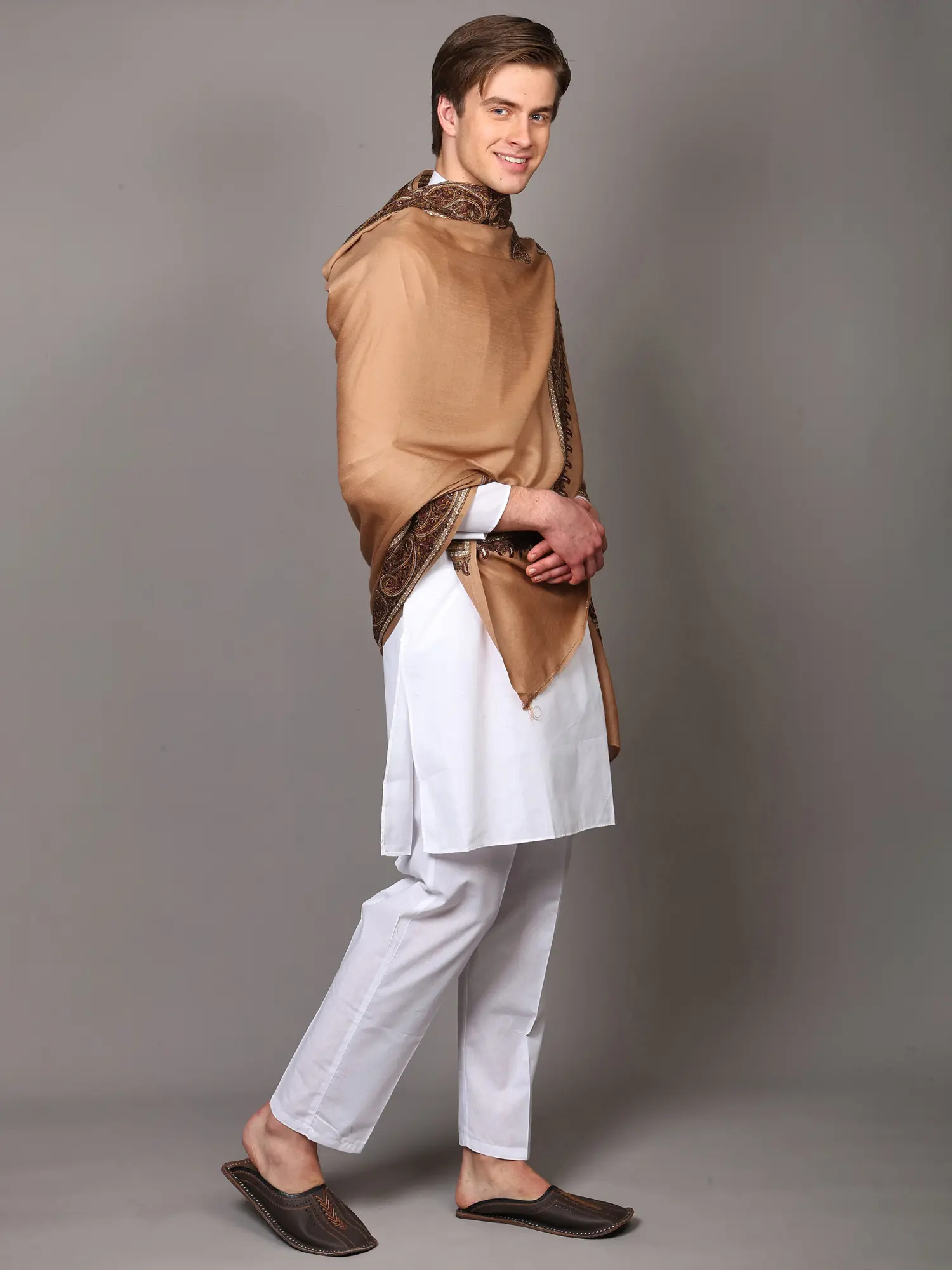 Plain Men's Shawl with Brown Woven Border