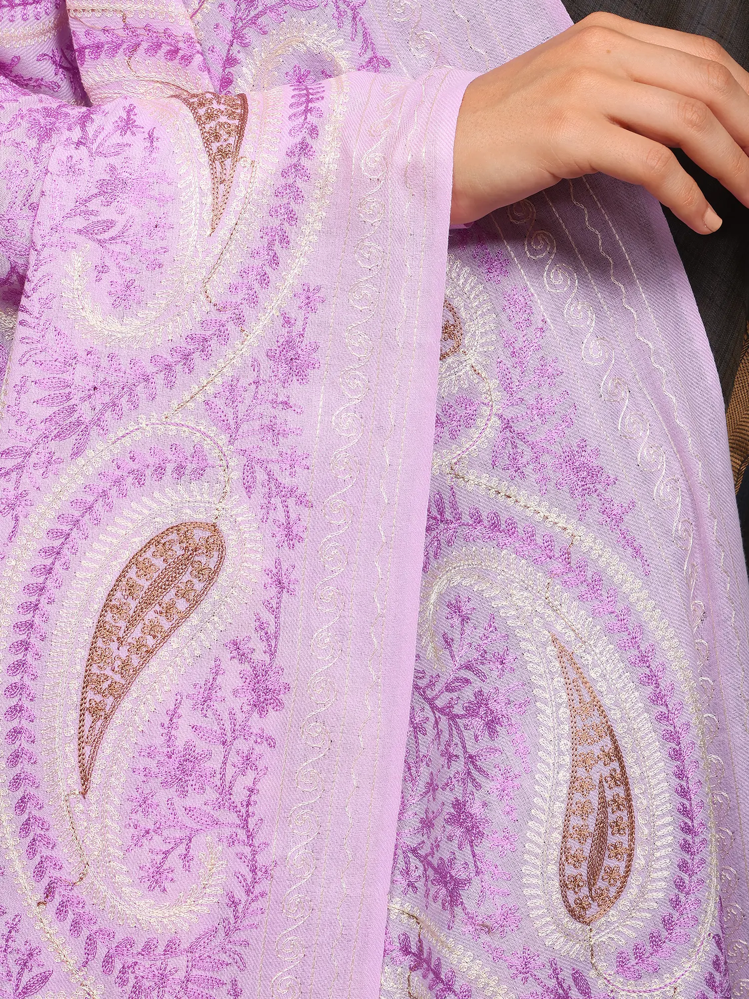 Wool Stole from Amritsar with Aari Embroidered Giant Paisleys