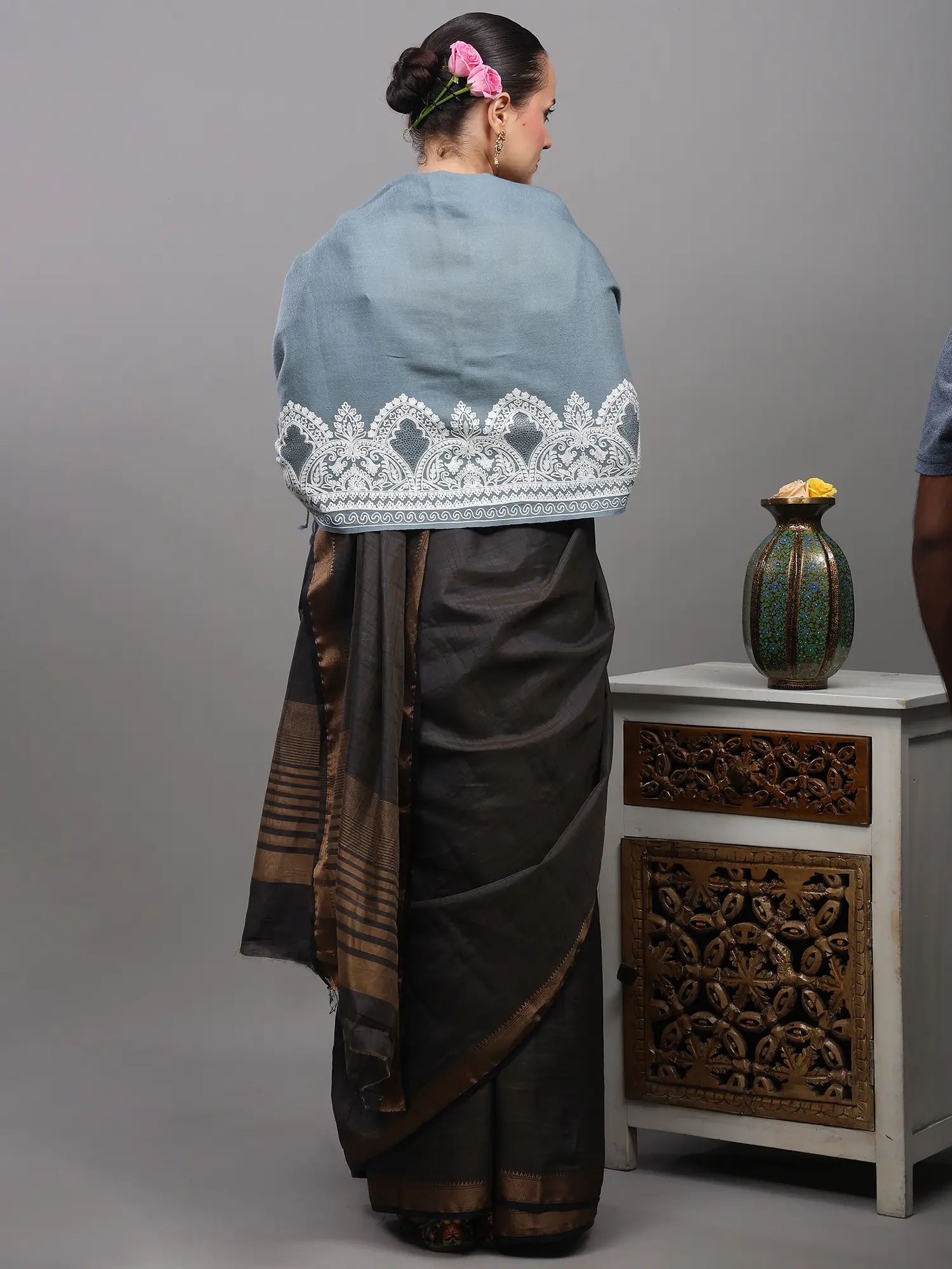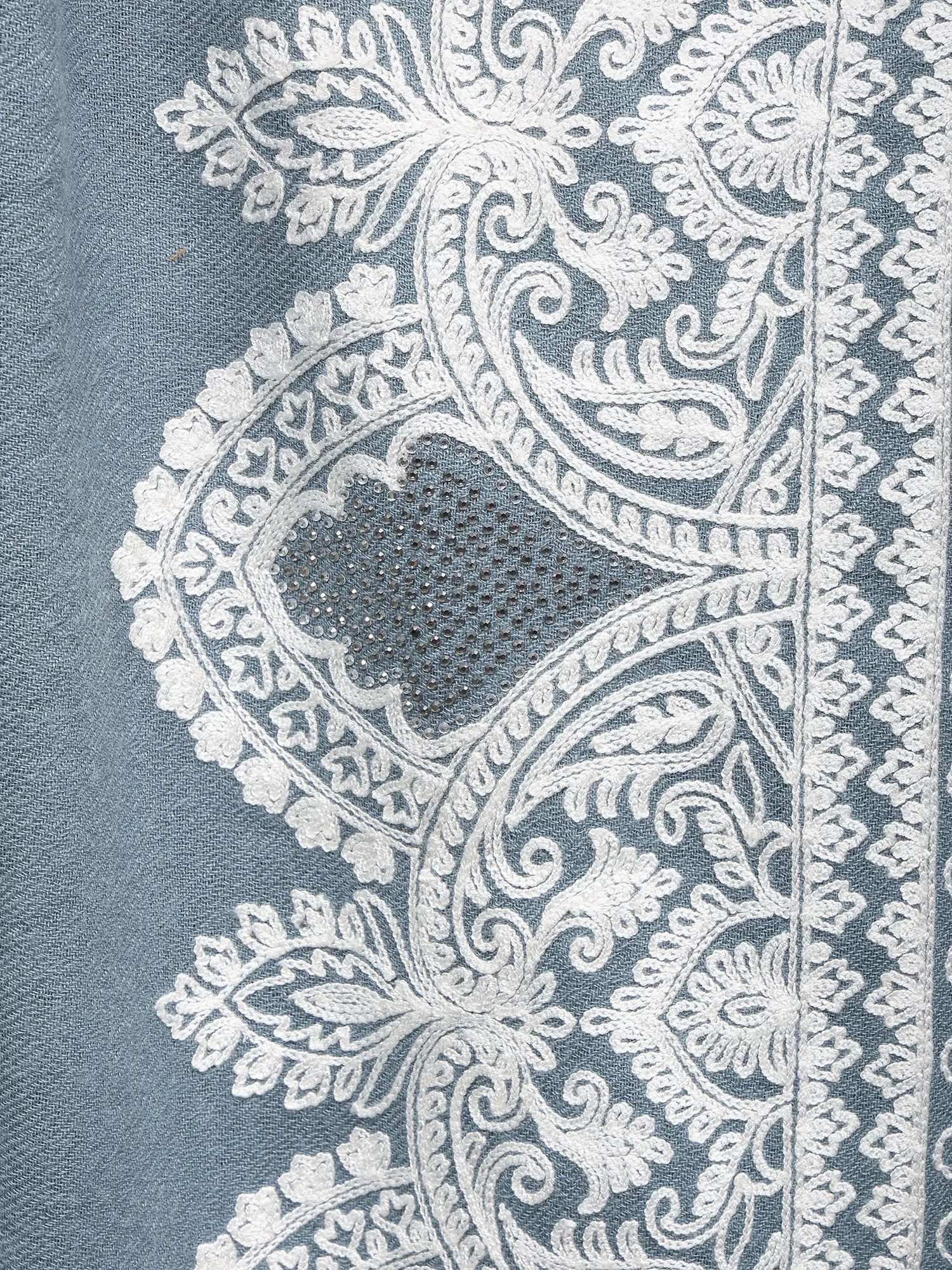 Pure Wool Stole from Kashmir with Aari Embroidered Giant Flowers by Hand