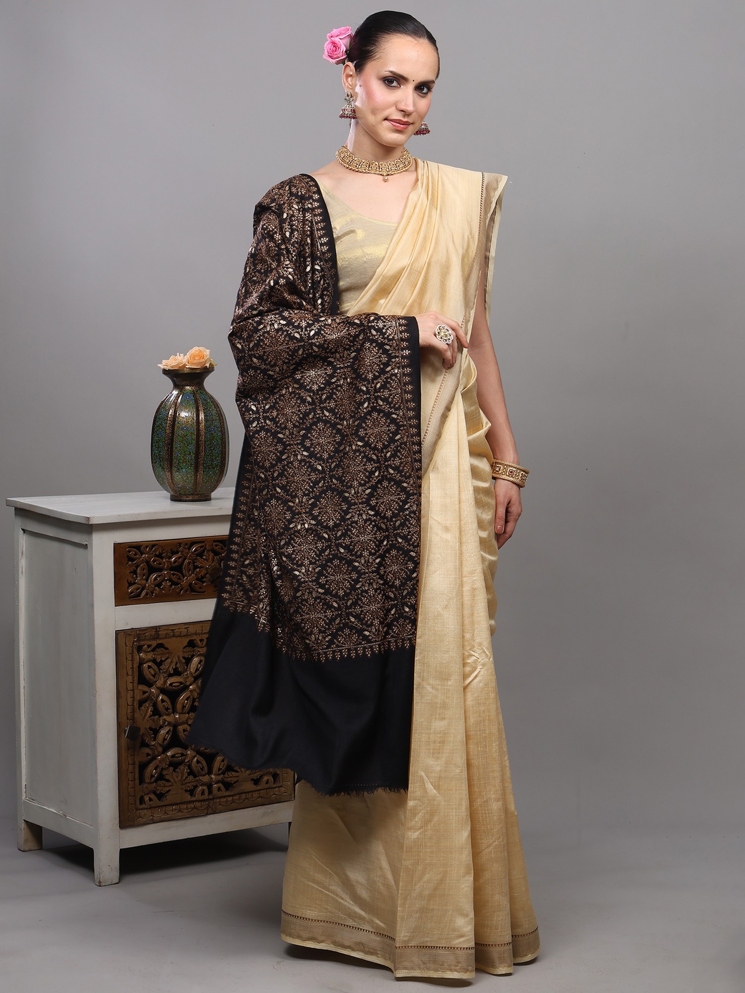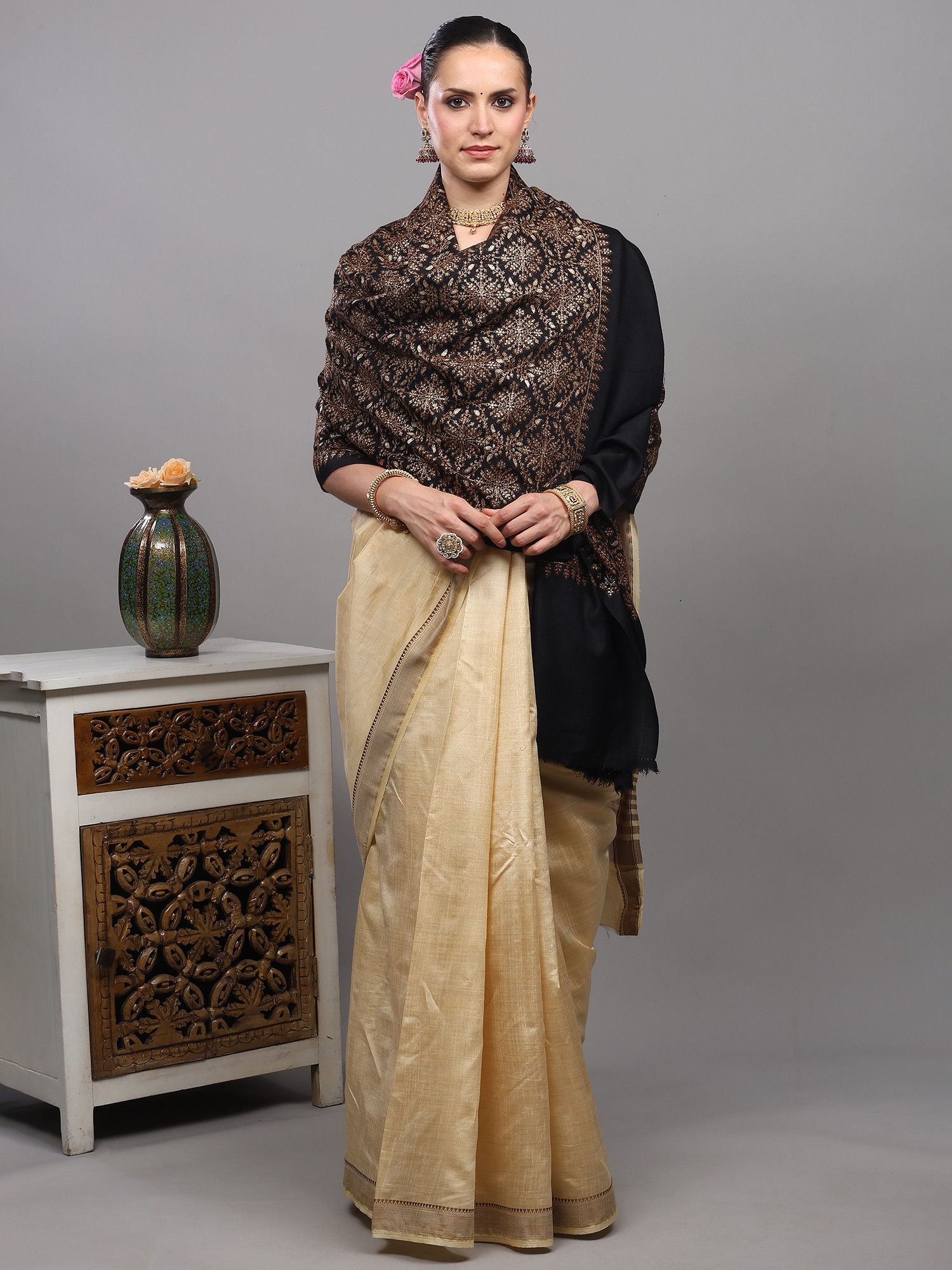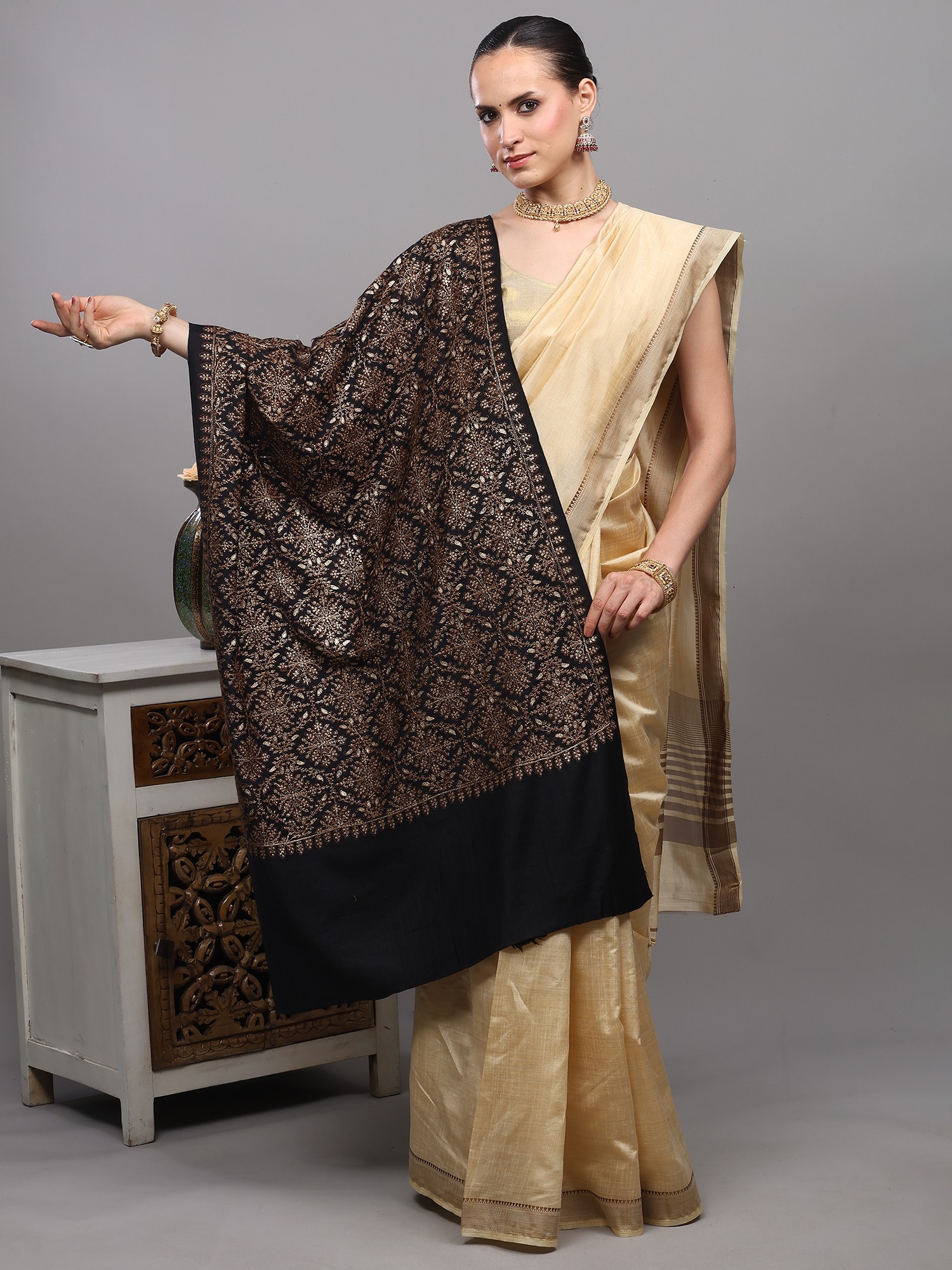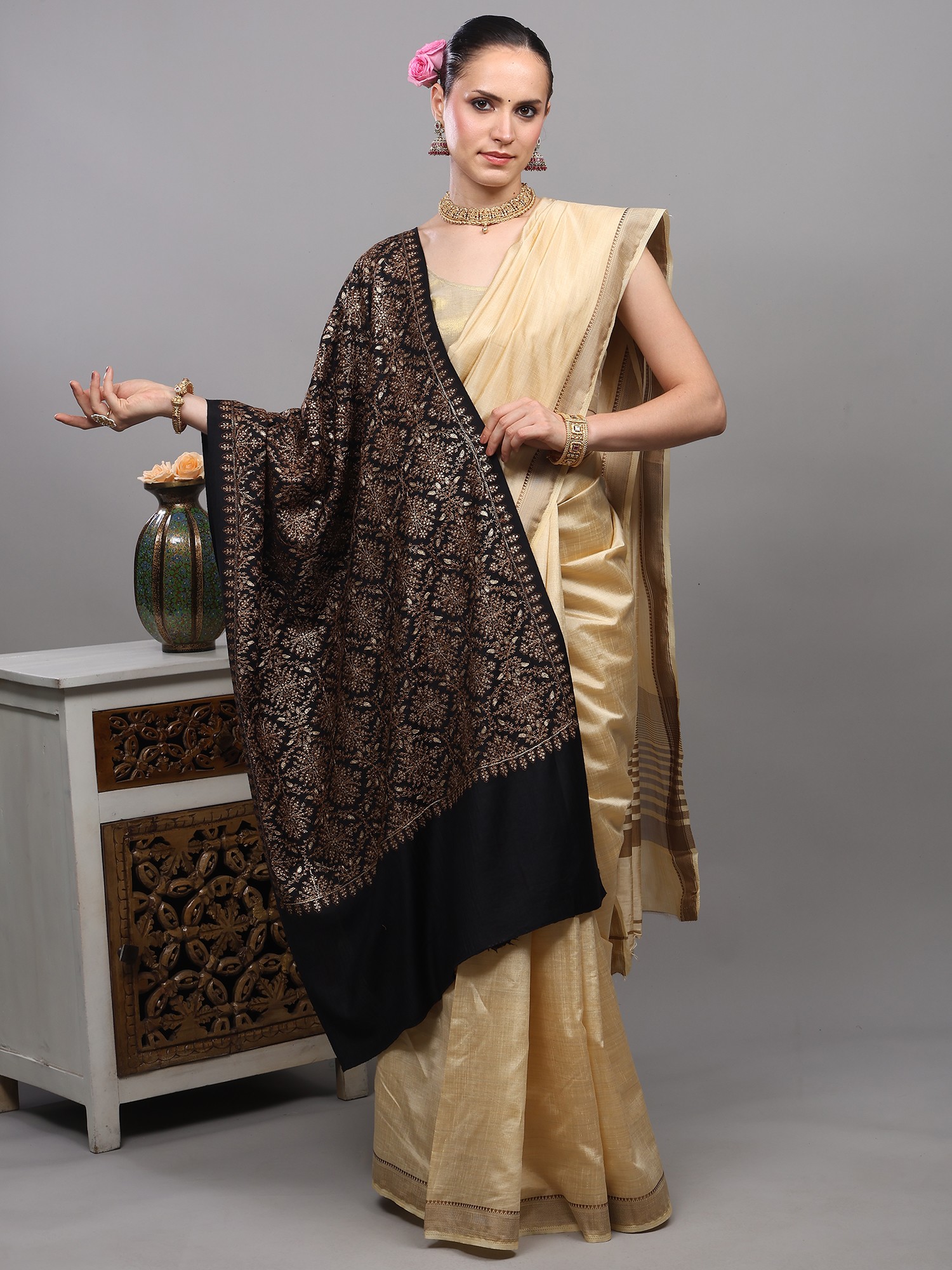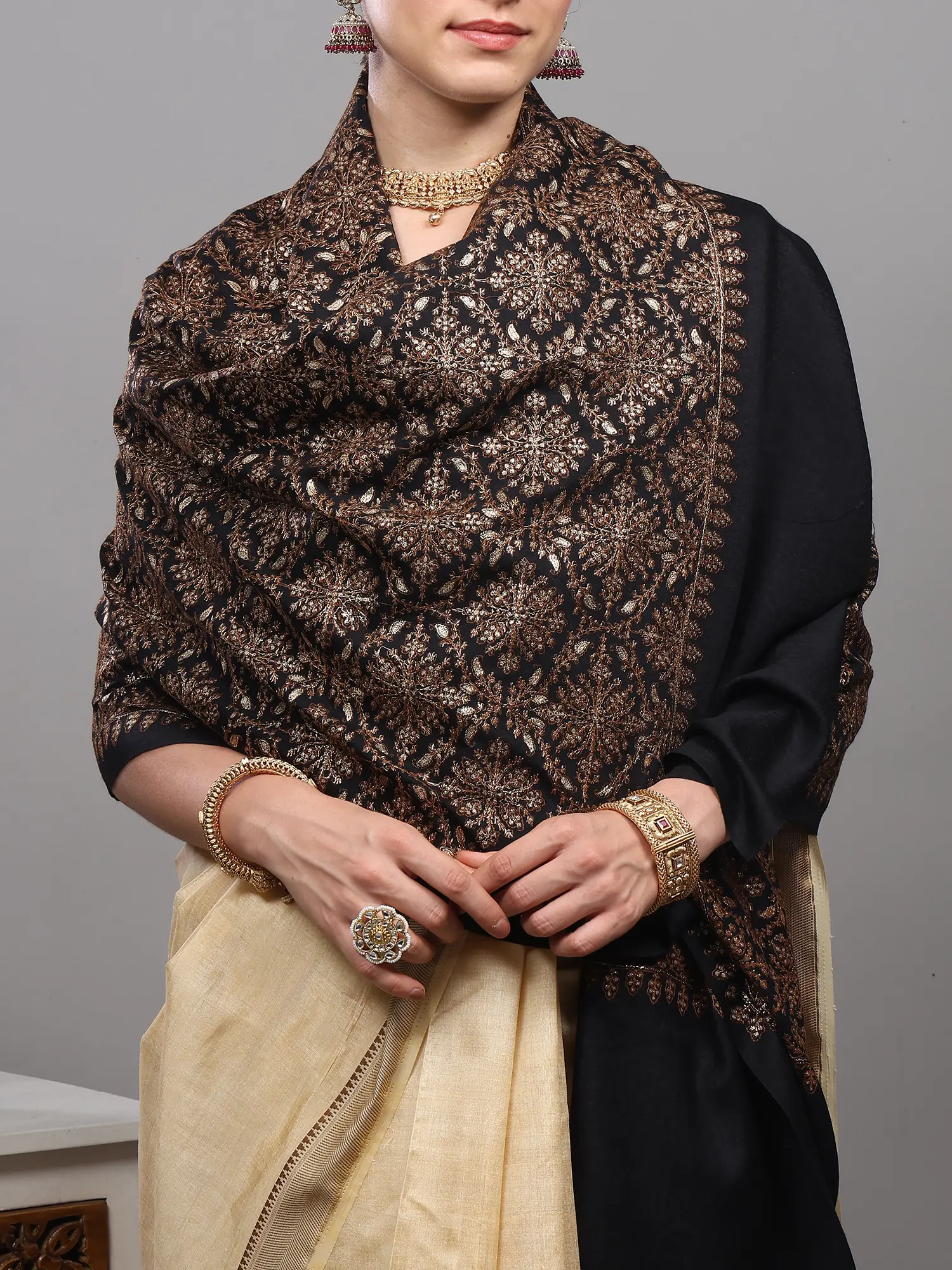 Black Pure Pashmina All-Over Sozni Jamawar Embroidered Shawl