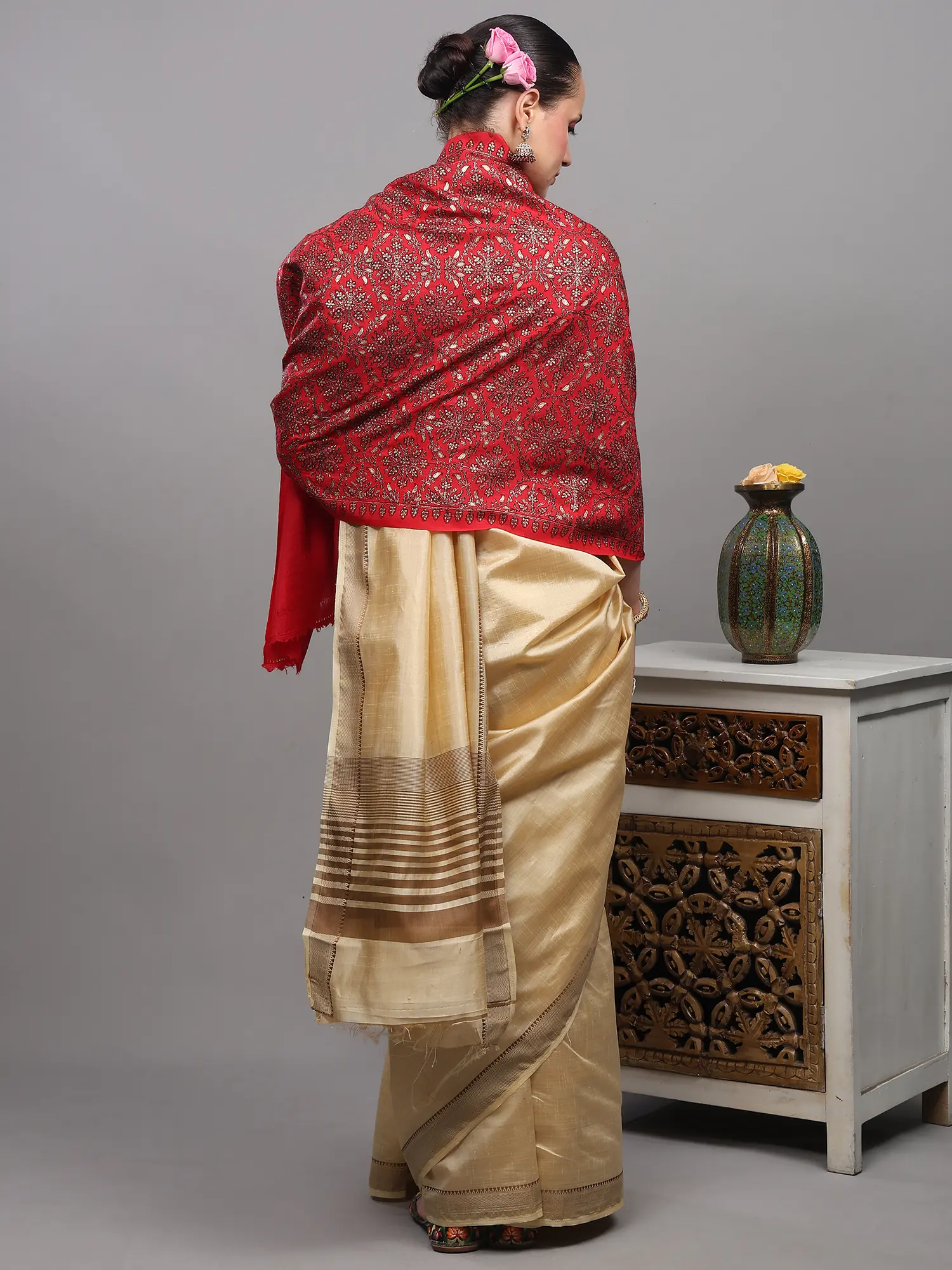 Maroon Pure Pashmina Sozni Jamawar Embroidered Shawl