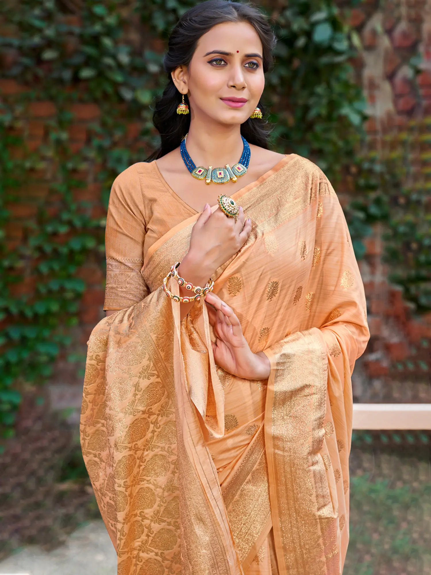Woven Motifs All Over Silk Saree With Blouse For Festive Occasion