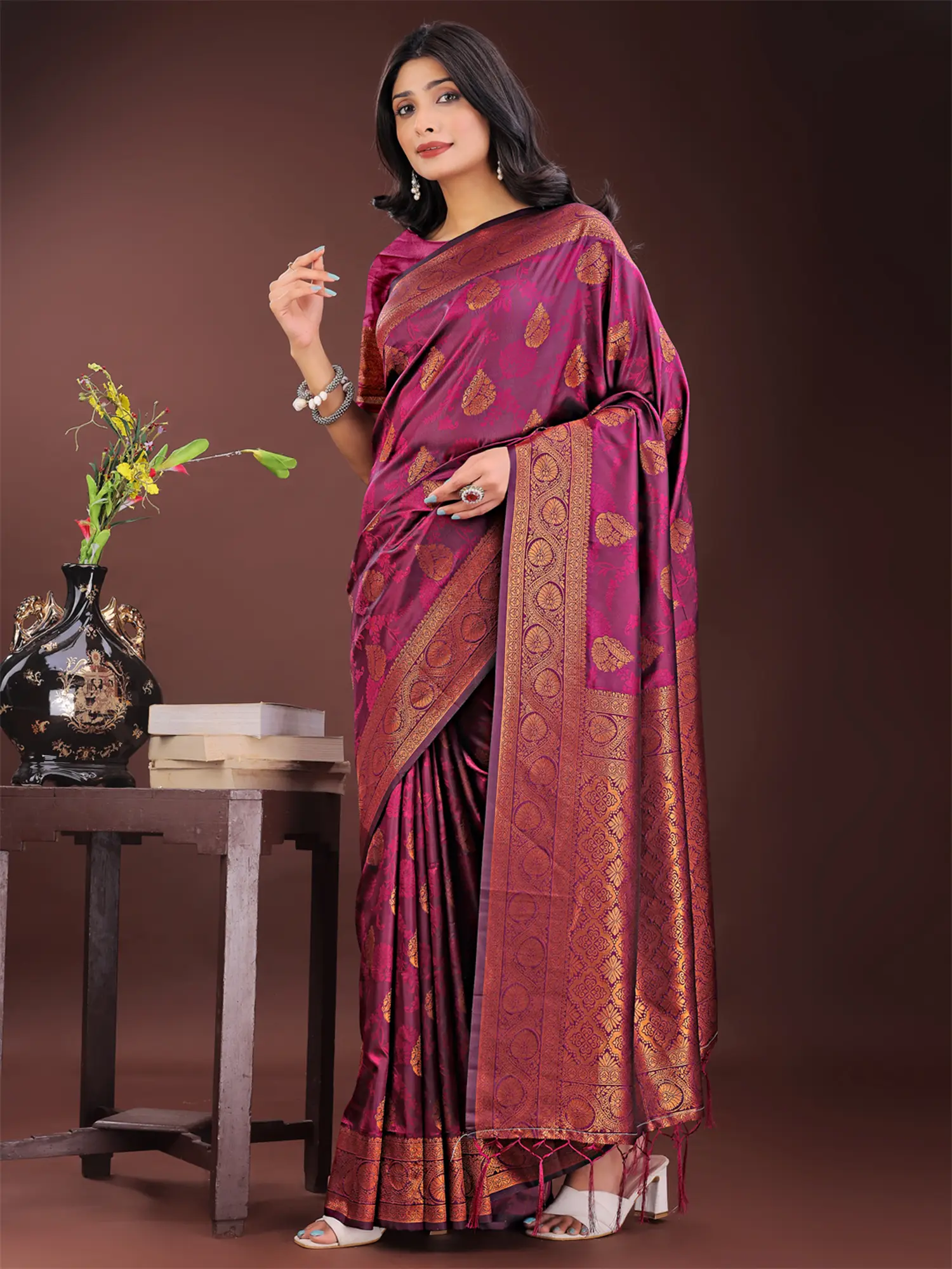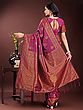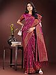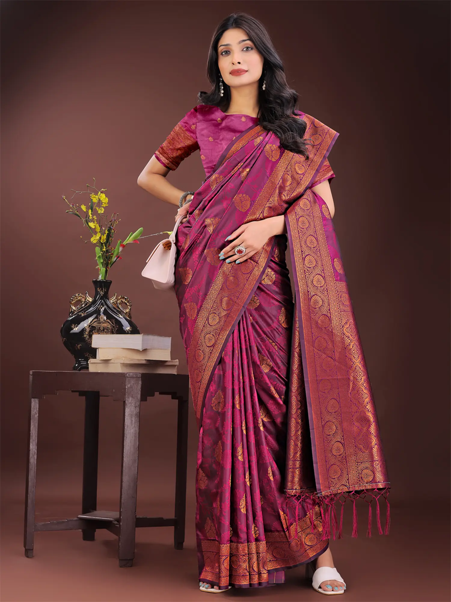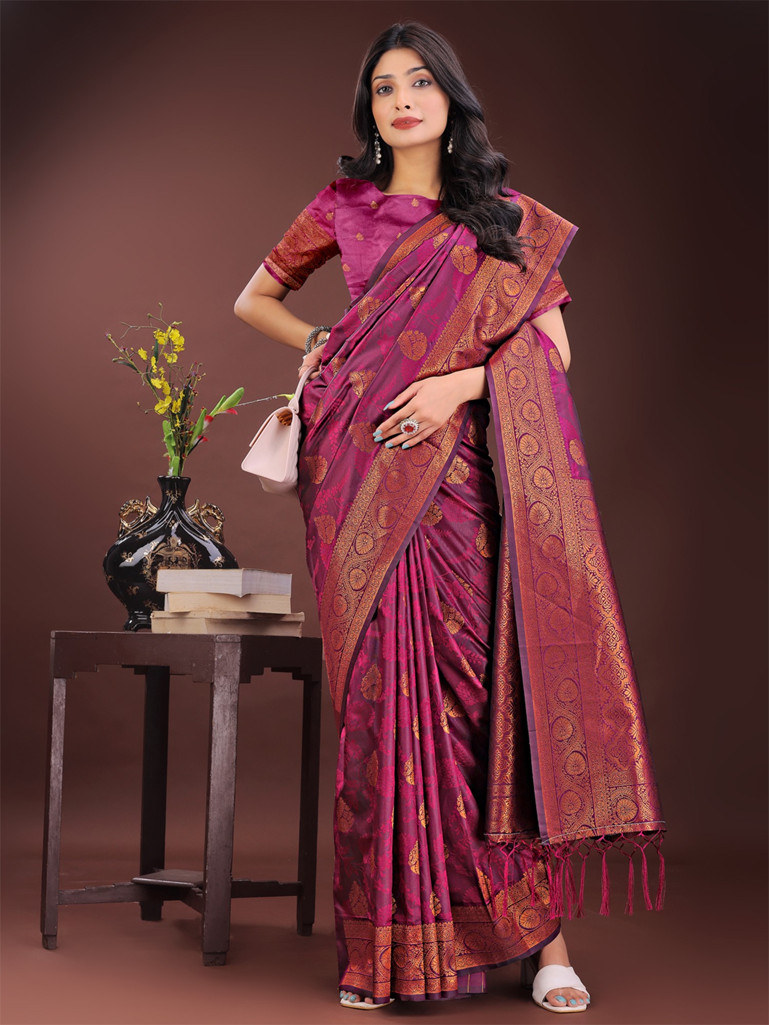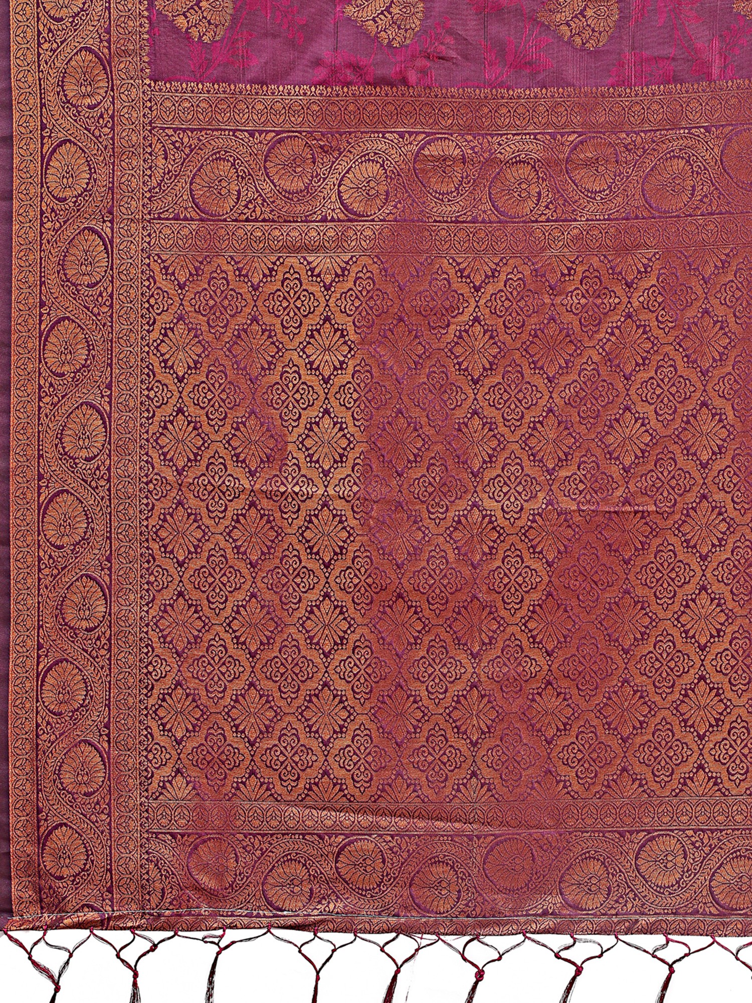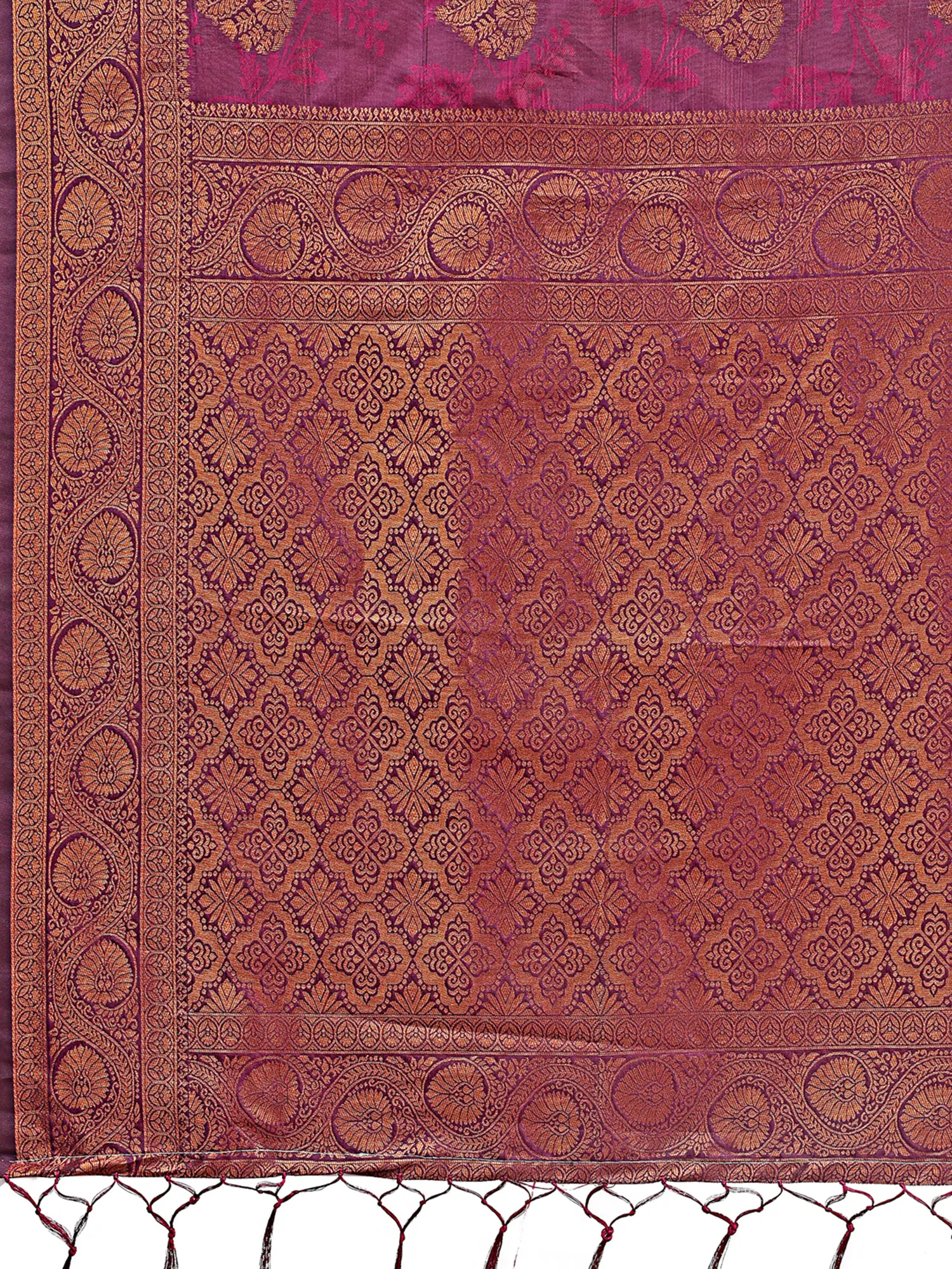 Woven Floral Motifs Attractive Silk Saree With Lotus Flower Tassels Pallu
