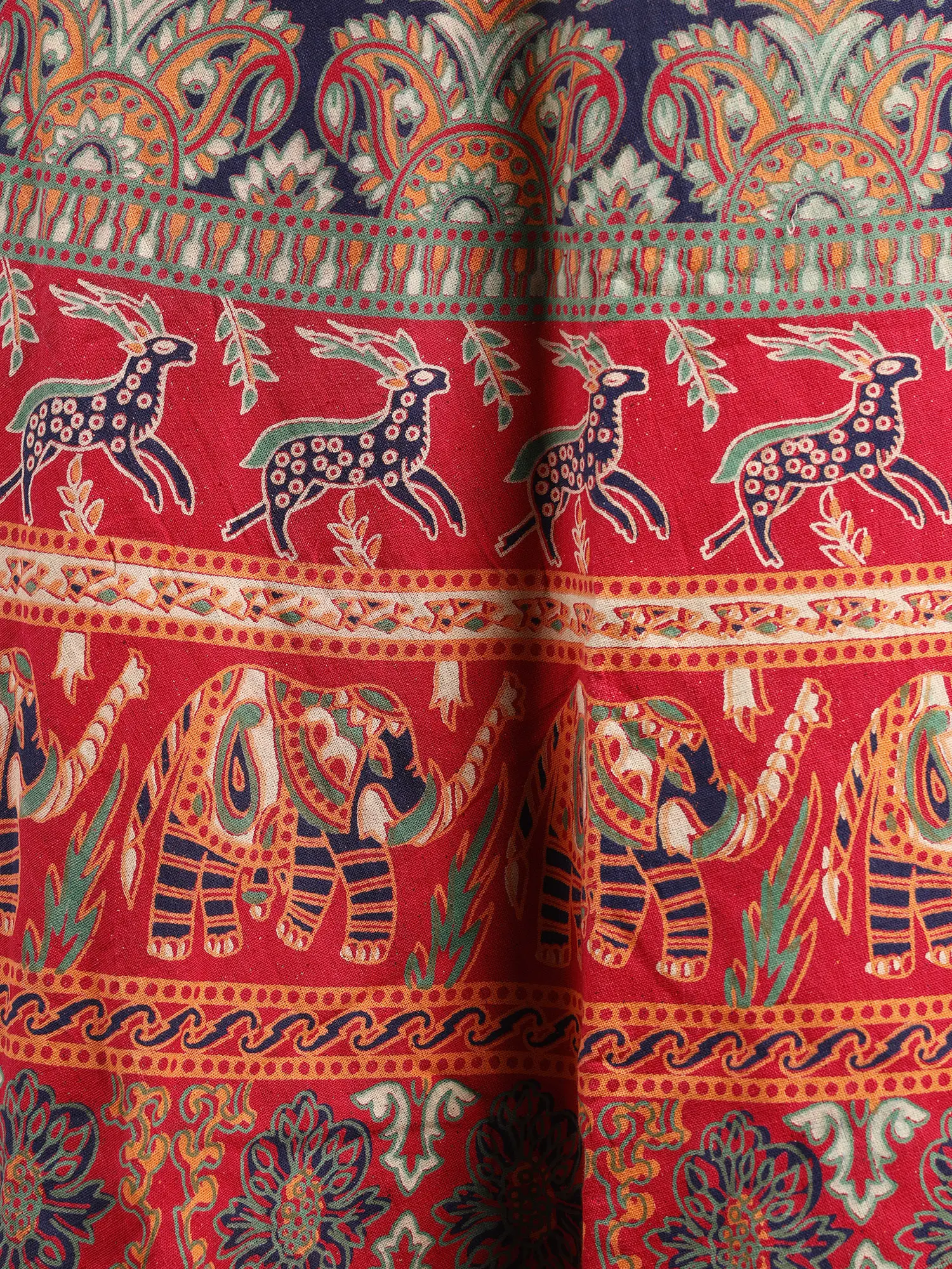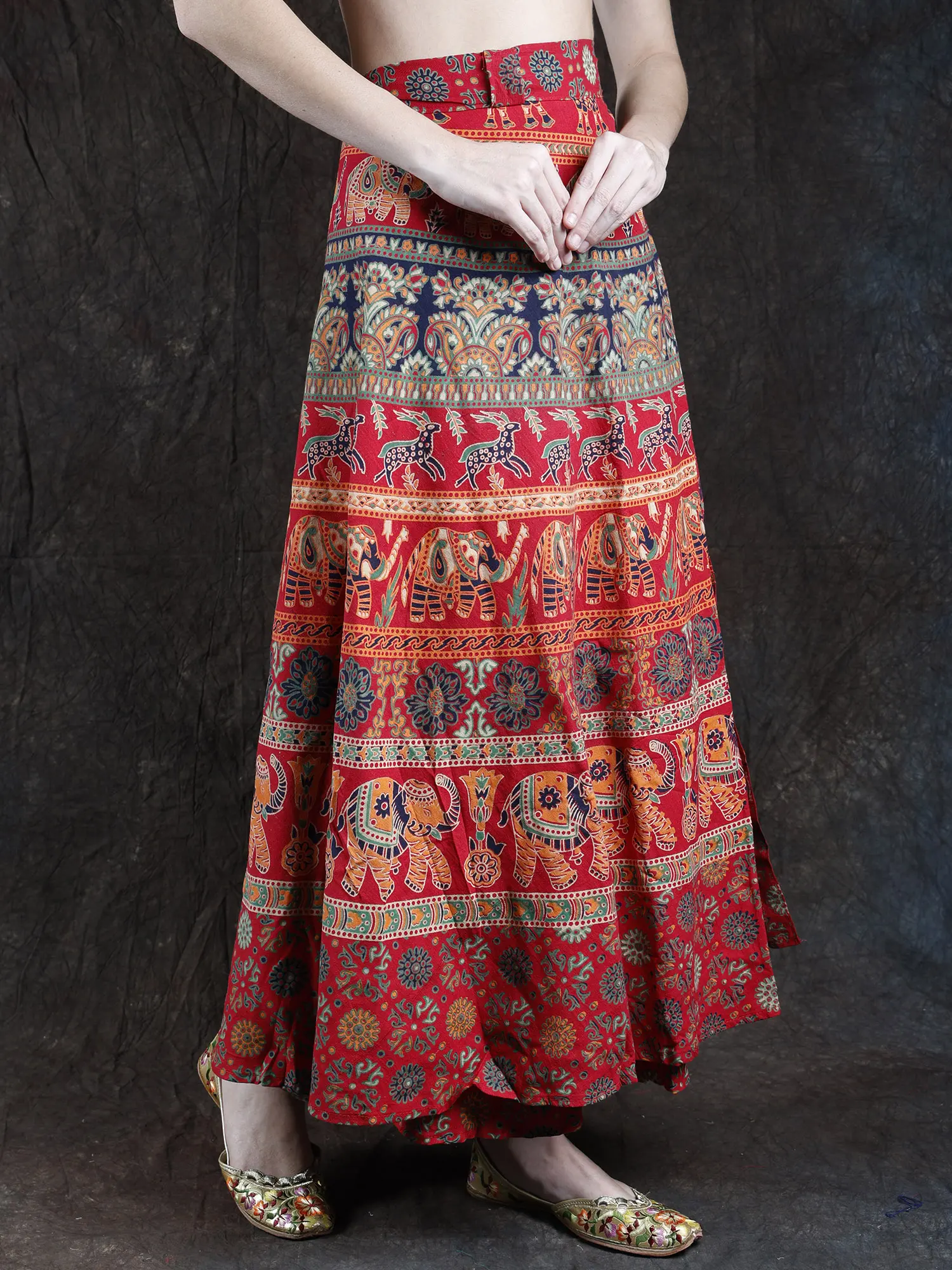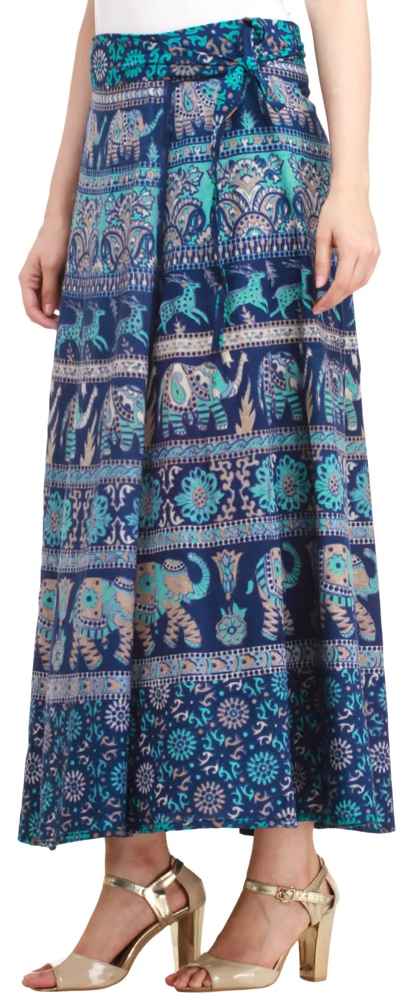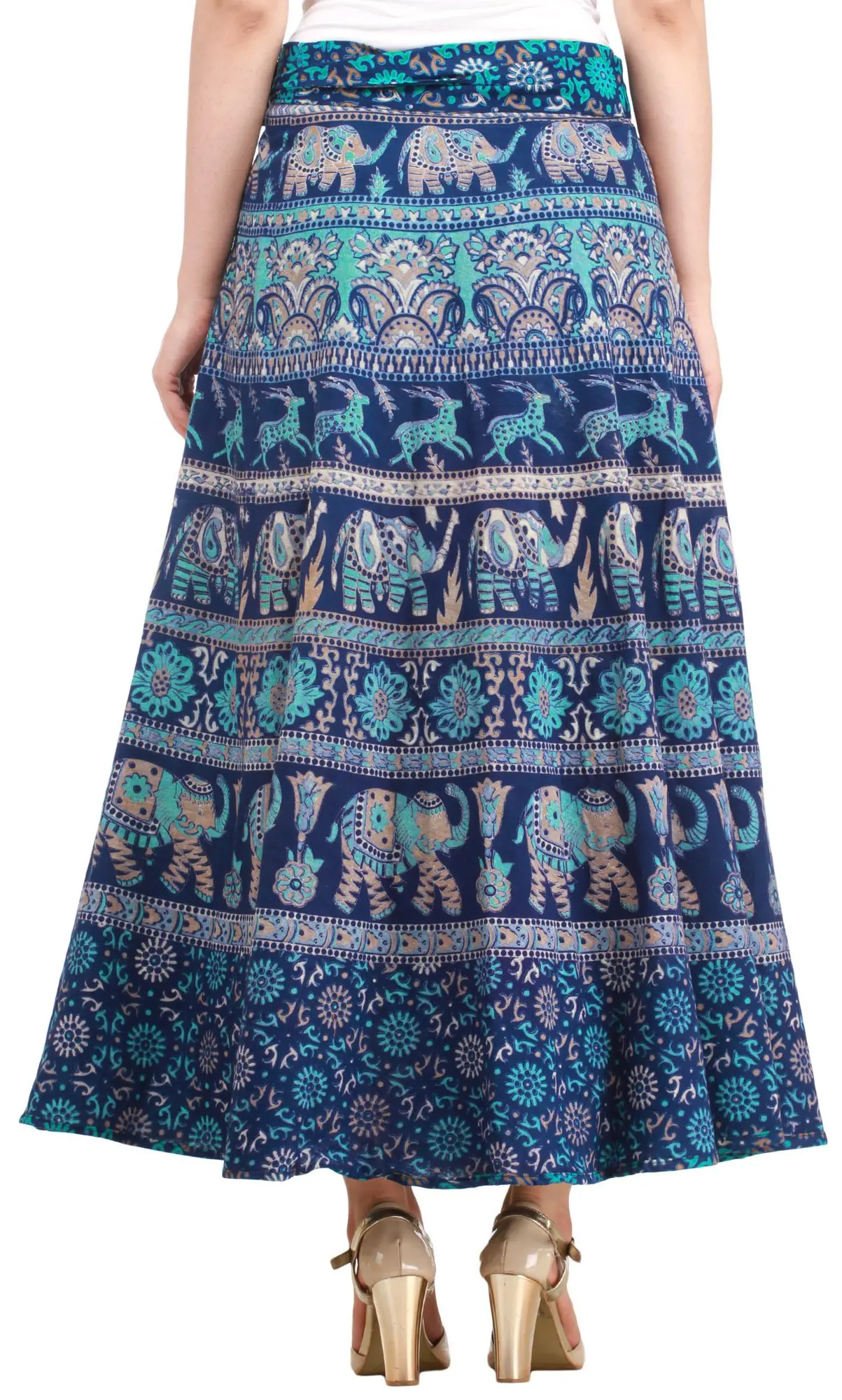 Pure cotton fabric, printed with vegetable dyes, stands out as the most comfortable choice for summers due to its breathability, moisture-absorbing properties, and skin-friendly nature. The Wrap-Around Long Skirt with Printed Elephants and Deer takes this comfort to the next level. Crafted from this breathable fabric, the skirt not only offers ease during warm days but also showcases a stylish Bohemian aesthetic. The vibrant prints of elephants and deer add a unique touch, making the wearer stand out. This apparel not only prioritizes comfort in summer but also embraces the free-spirited and distinctive fashion wave of Bohemian style, ensuring a fashionable and comfortable look.
