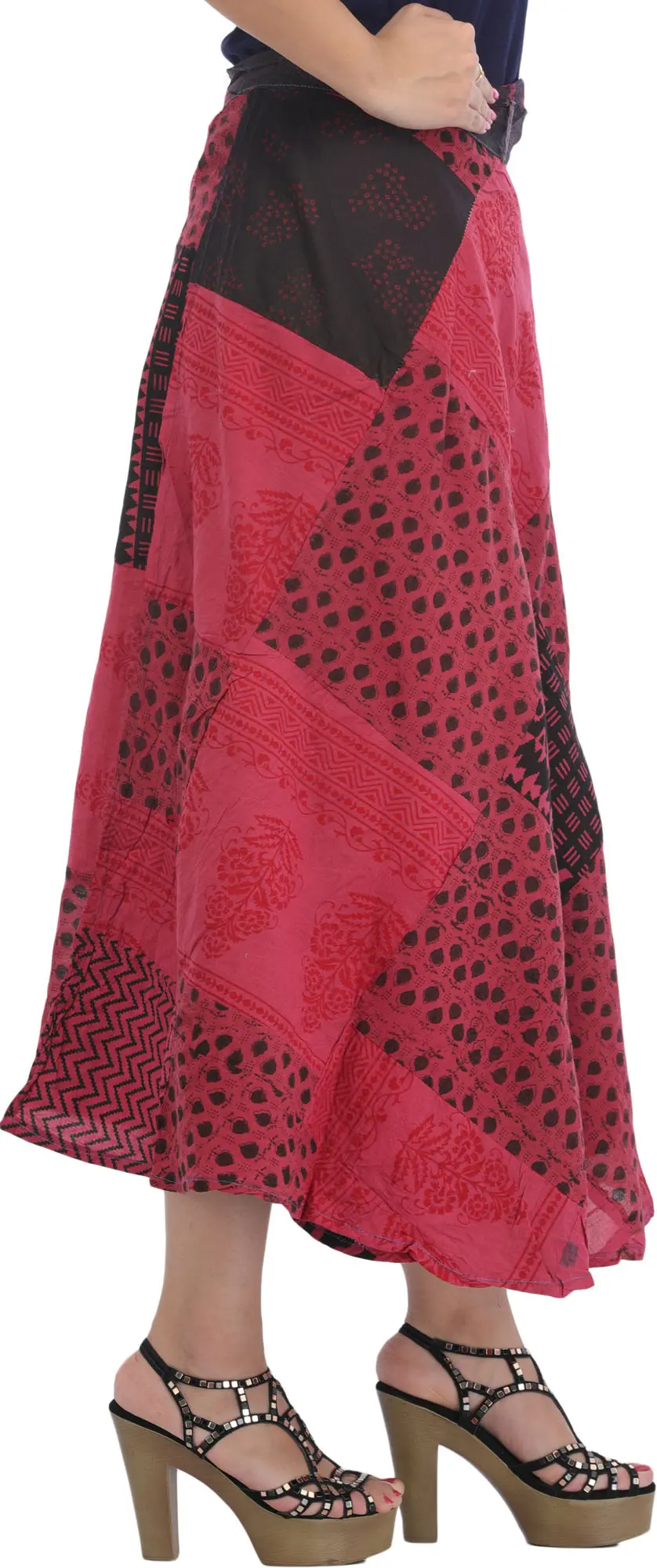 Ghagra Skirt from Kutch with Multicolor Thread Embroidered Patch Border and Mirrors