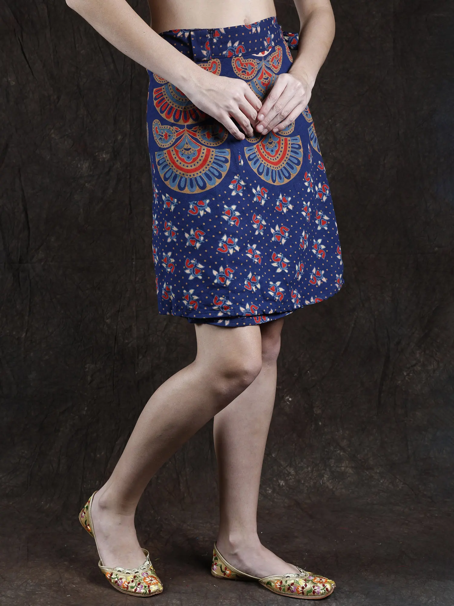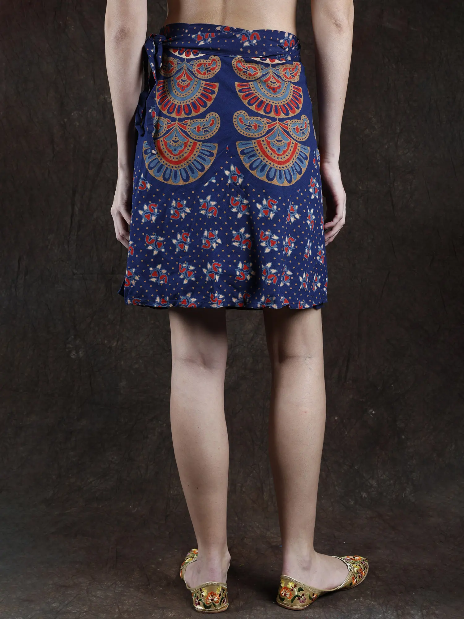 This “Wrap-Around Sanganeri Short-Skirt” is a mesmerizing tribute to the rich heritage of “Sanganeri hand block printing,” crowned with a prestigious “GI tag” since 2010. Adorned with printed motifs, each swirl and curve whispers tales of tradition and artistry. This skirt is a canvas of culture, and a celebration of artistry.