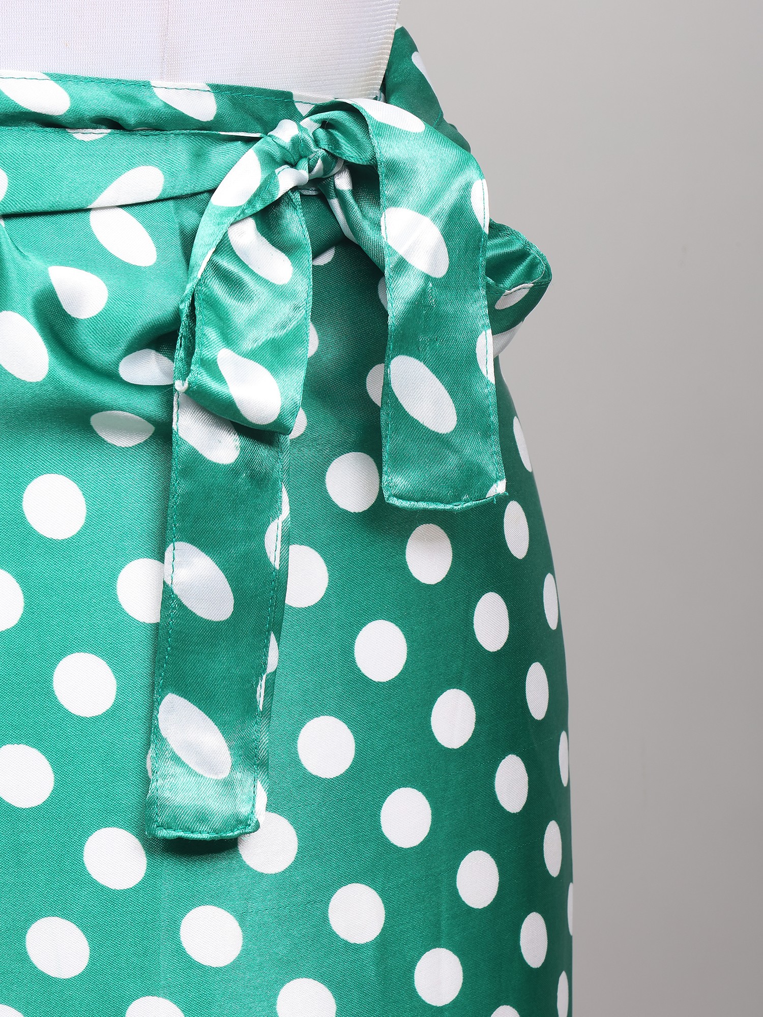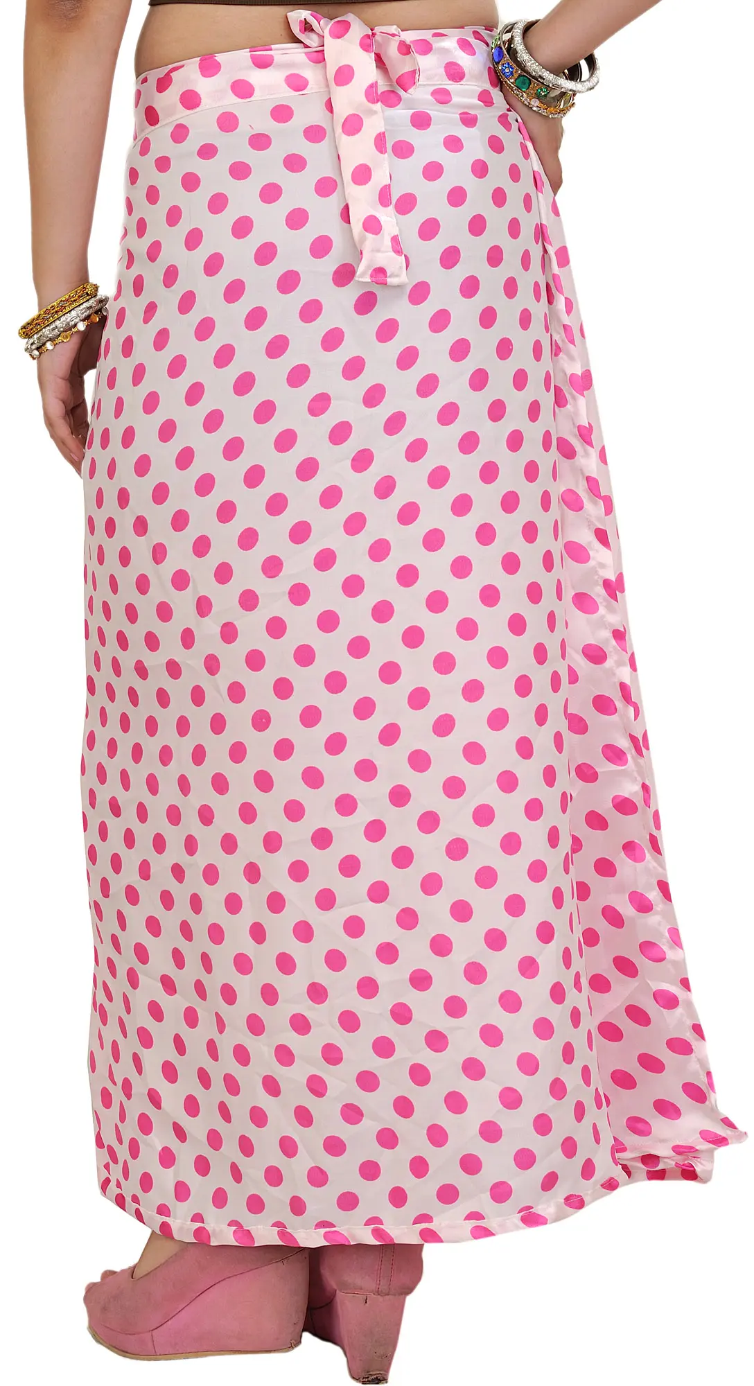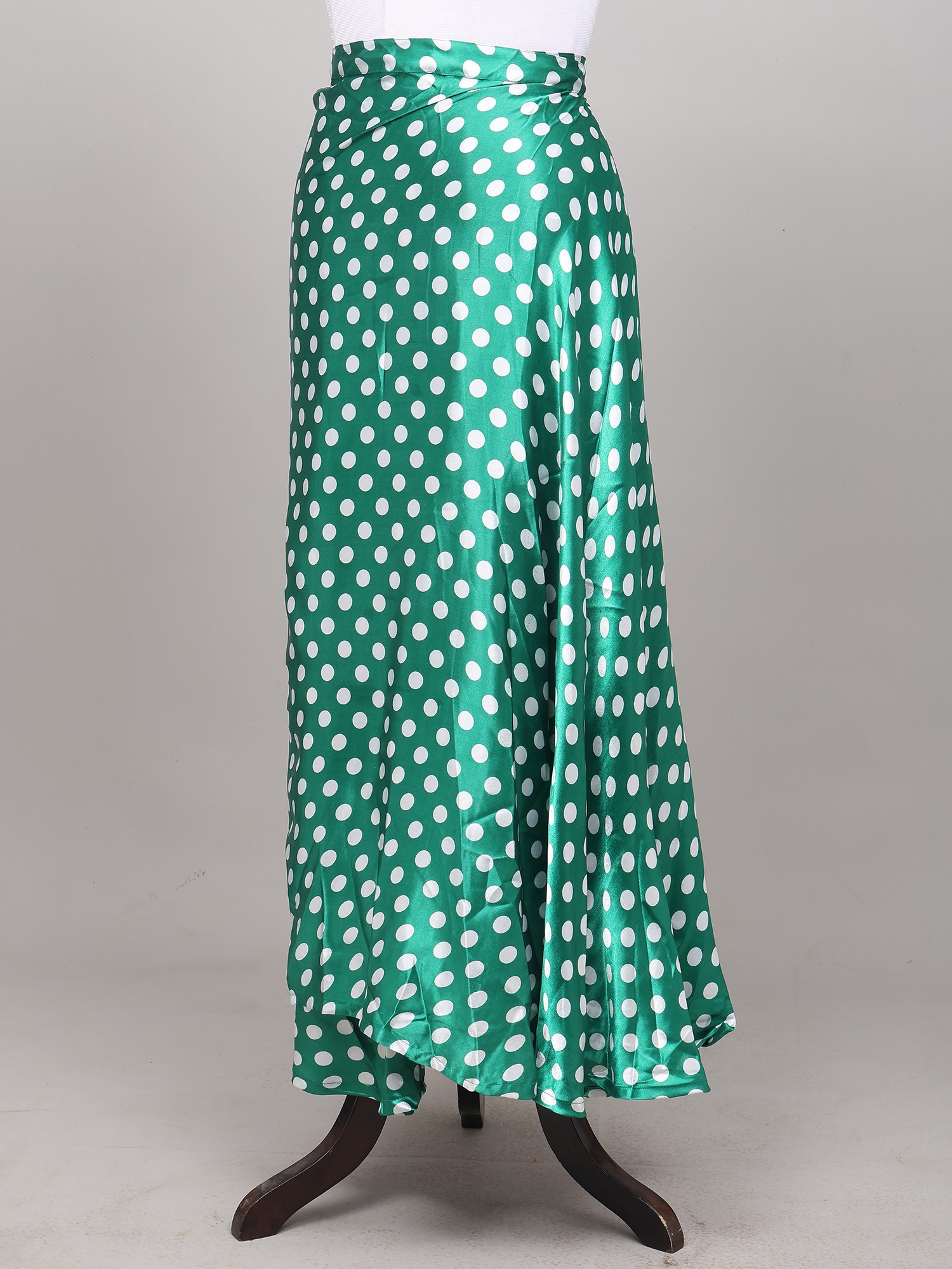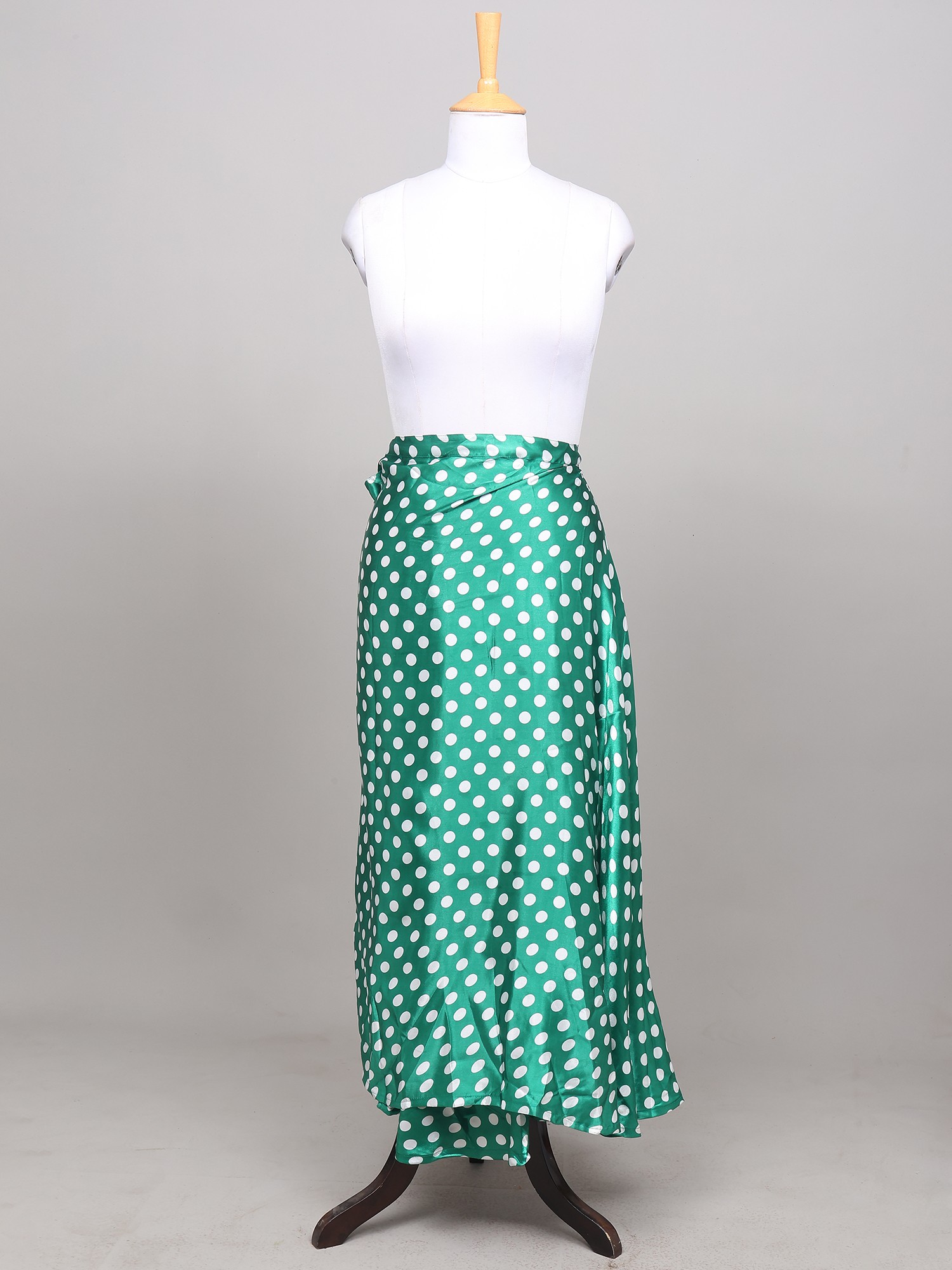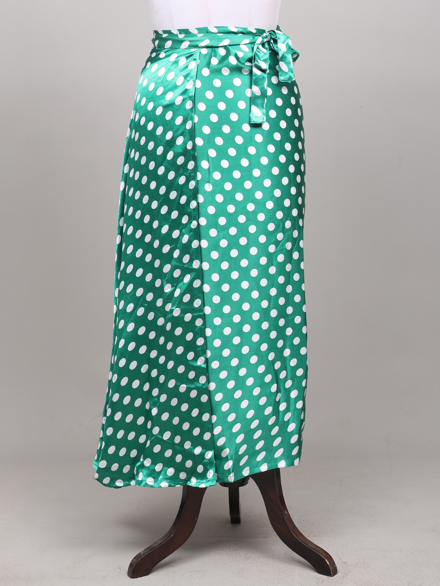 This stunning Wrap-Around Skirt, embellished with magnificent Aari Polka Printed Dots, is a wonderful choice for individuals who value subtle charm. This skirt, made from rich satin, flawlessly marries comfort and style, with a beautiful drape that flatters every form. The all-over polka motif adds a dash of retro glamour to your ensemble. It seamlessly transitions from day to night, making it suitable for both casual excursions and spectacular events. Embrace your inner vivacity and let this skirt be your statement piece, reflecting a lively flare for fashion.