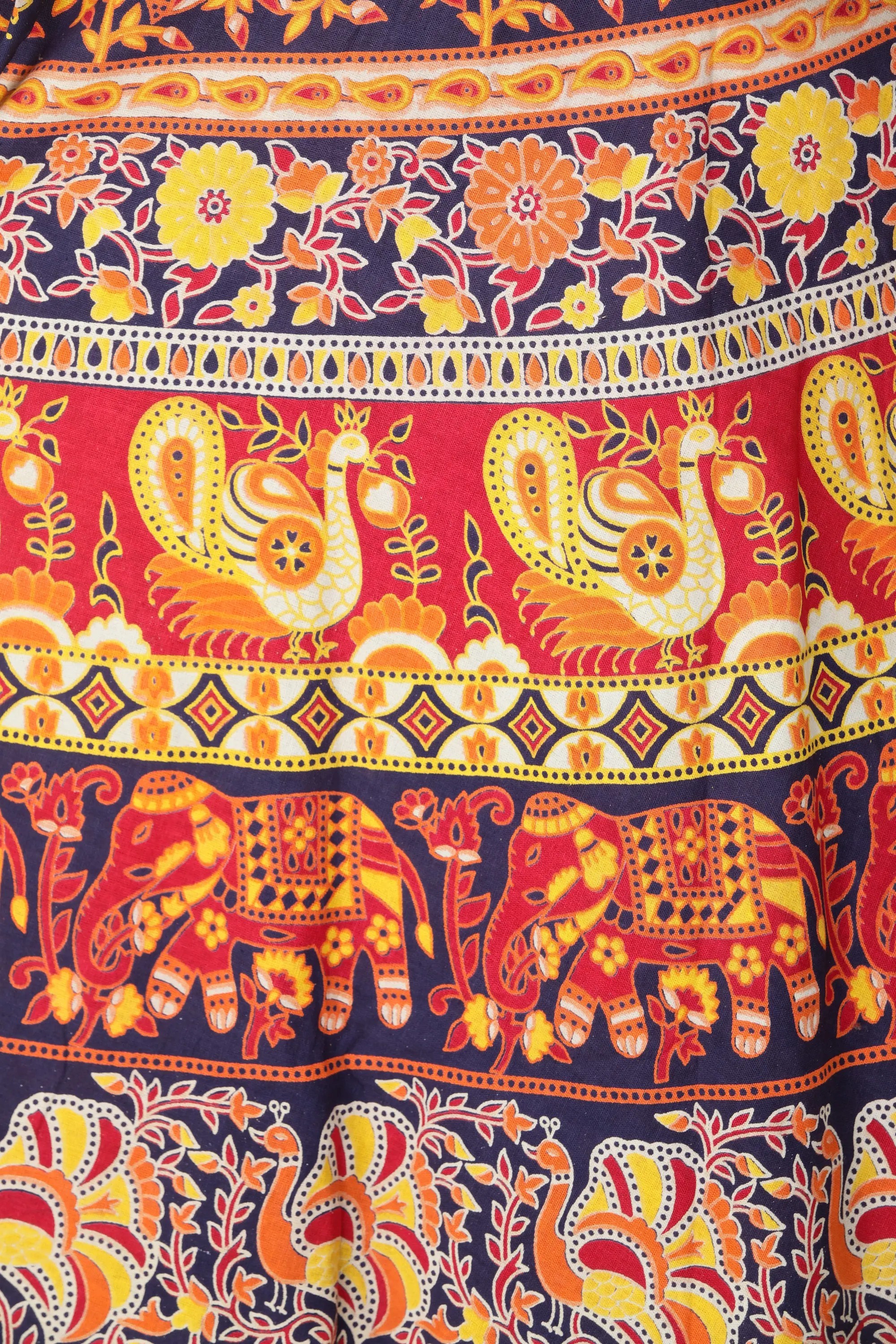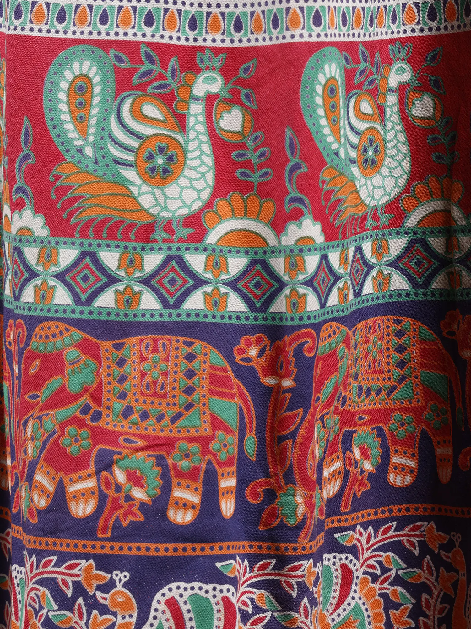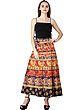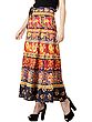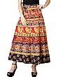 Pure Cotton Wrap-On Long Skirt with Printed Multicolor Ikat Pattern