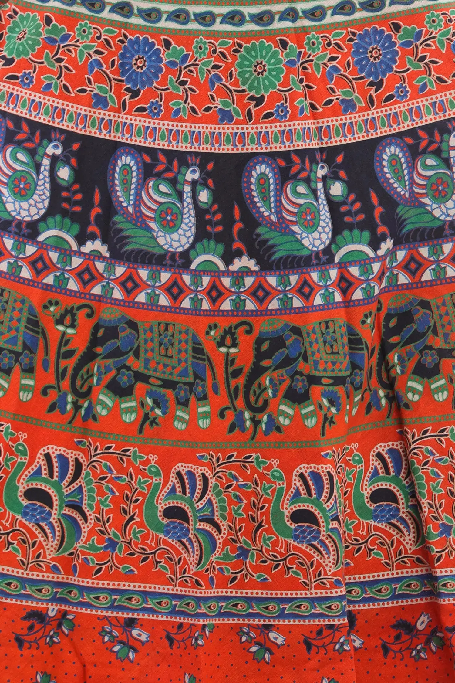 Green-Tint Printed Wrap Around Long Skirt from Rajasthan