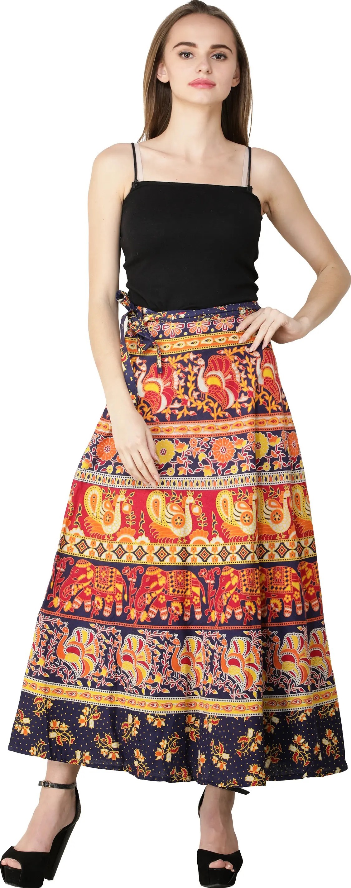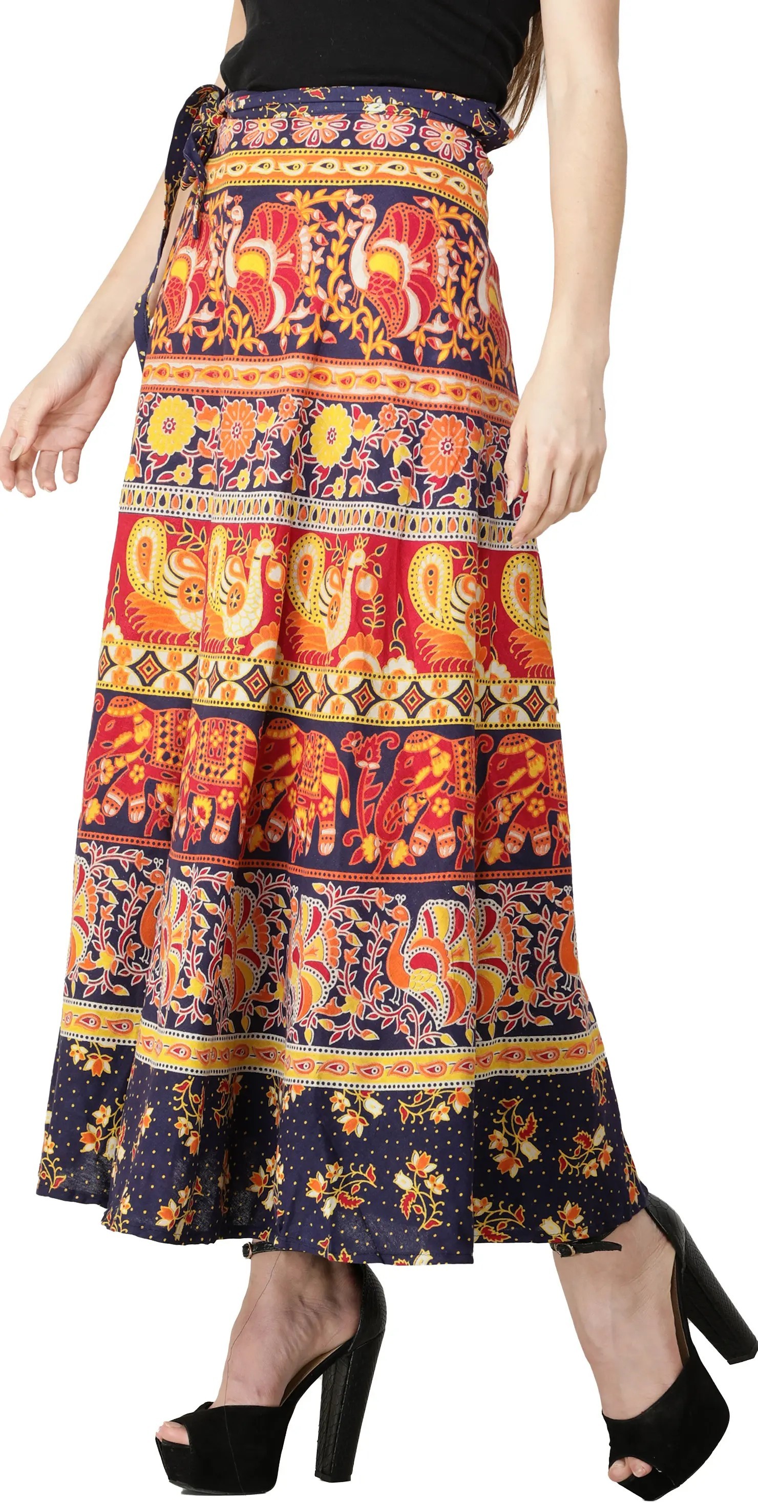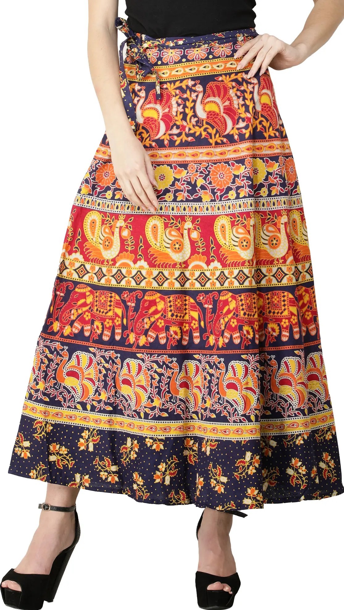 Bonnie-Blue Pure Cotton Wrap Around Printed Long Skirt