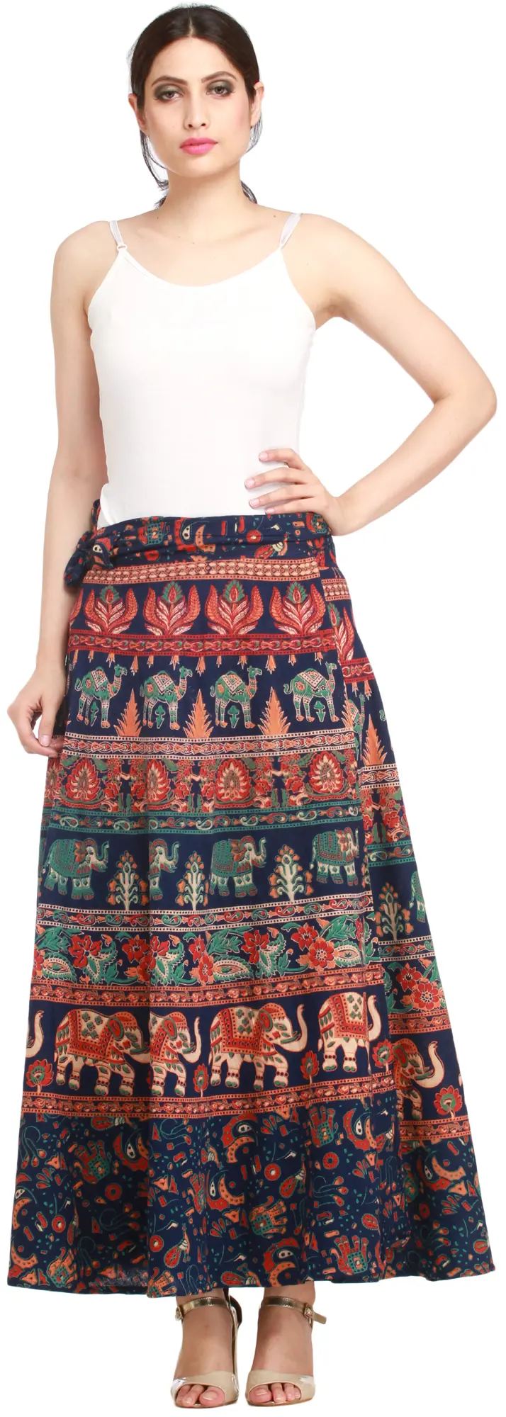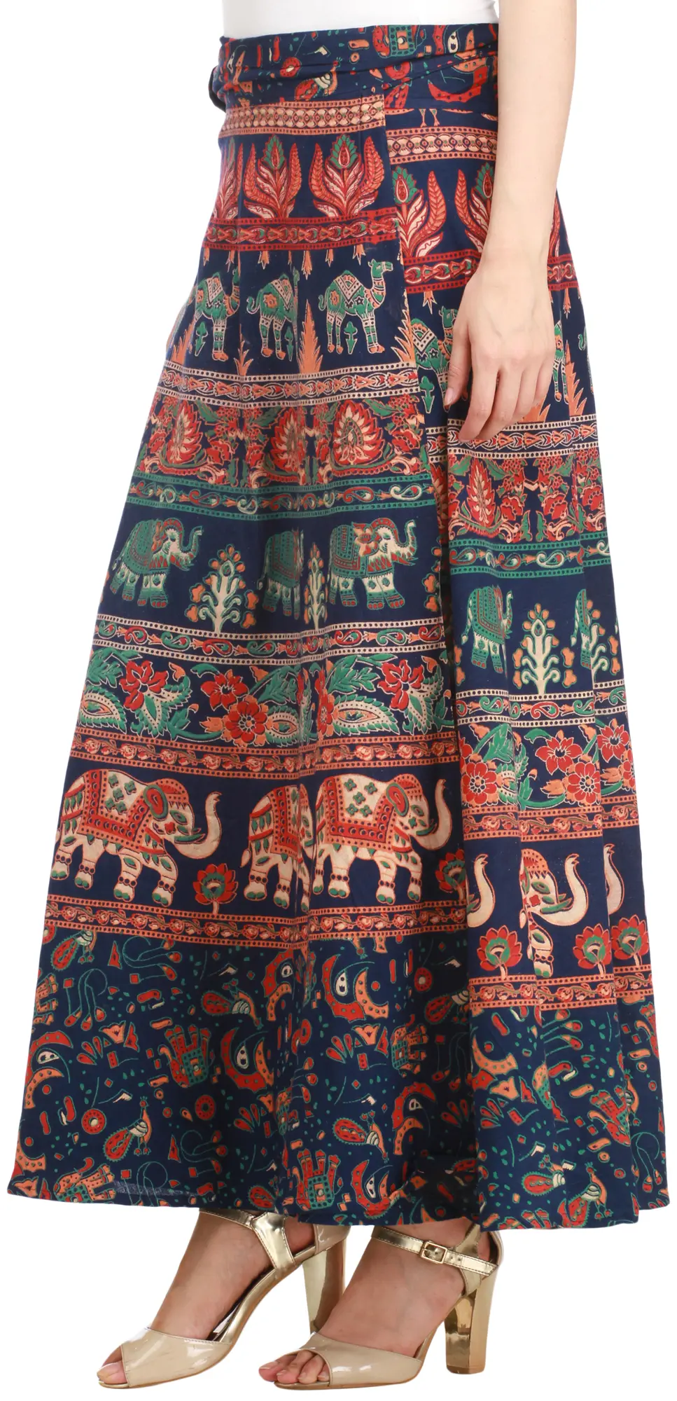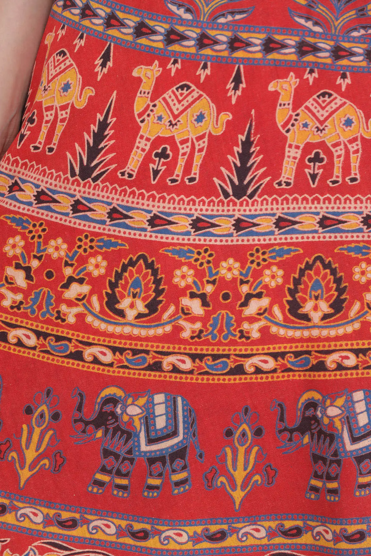 This long skirt is a fusion of artisanal charm and comfort, and it has been adorned with enchanting prints of majestic elephants and serene camels. Each stroke tells a tale of ancient landscapes and vibrant cultures. Since it is made of pure cotton and dyed with natural vegetable extracts, it emanates eco-conscious charm. Embrace comfort without compromising style. Let the gentle sway of fabric whisk you away to exotic destinations, where each fold tells a story of adventure and heritage. Unveil your free spirit with every step in this artisanal masterpiece.