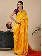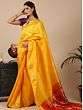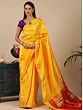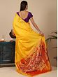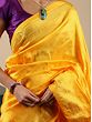 “Pita”- yellow, in Indian culture is the color of auspiciousness, purity, and divinity. It is the color that wraps Sri Vishnu, goddess Saraswati, and Lord Ganesha. Inspired by the splendor of yellow, this Paithani saree is wreathed in a lovely yellow, making this a propitious drape for the wearer. With tiny paisley motifs spread on the field, the saree has a matchless elegance, contrasted by its richly decorated pallu, a quintessential element of Paithani.