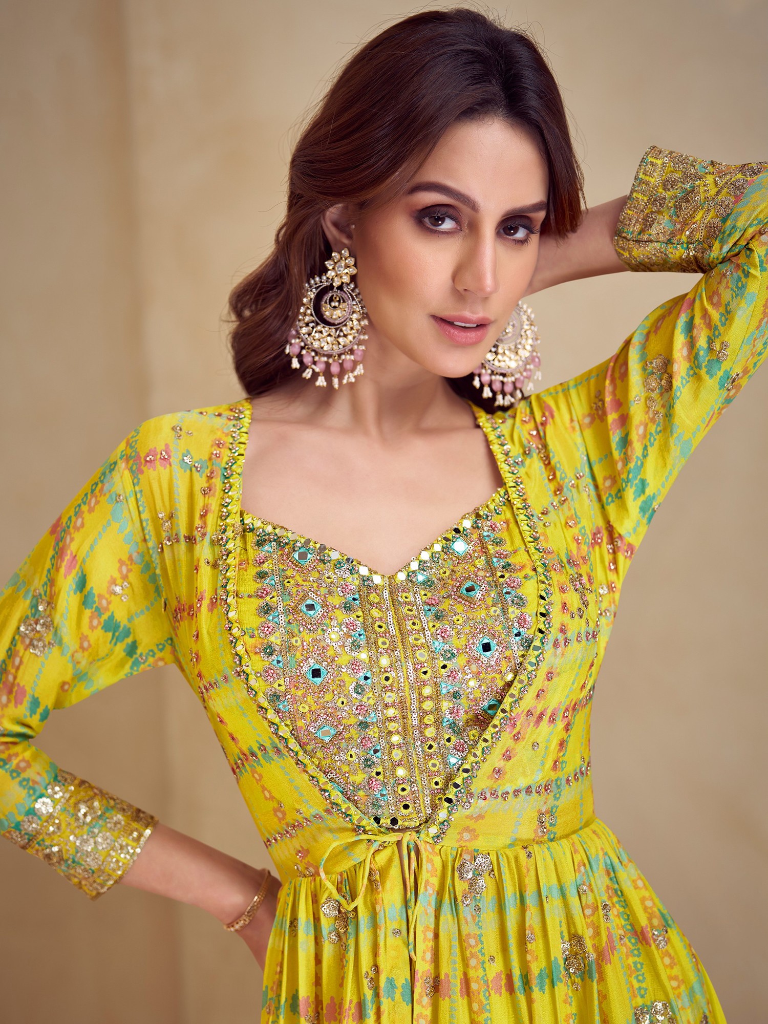 Yellow Palazzo Salwar Suit Chinon Ethnic Wear Designer Outfit For Festival Party Wedding Ceremony