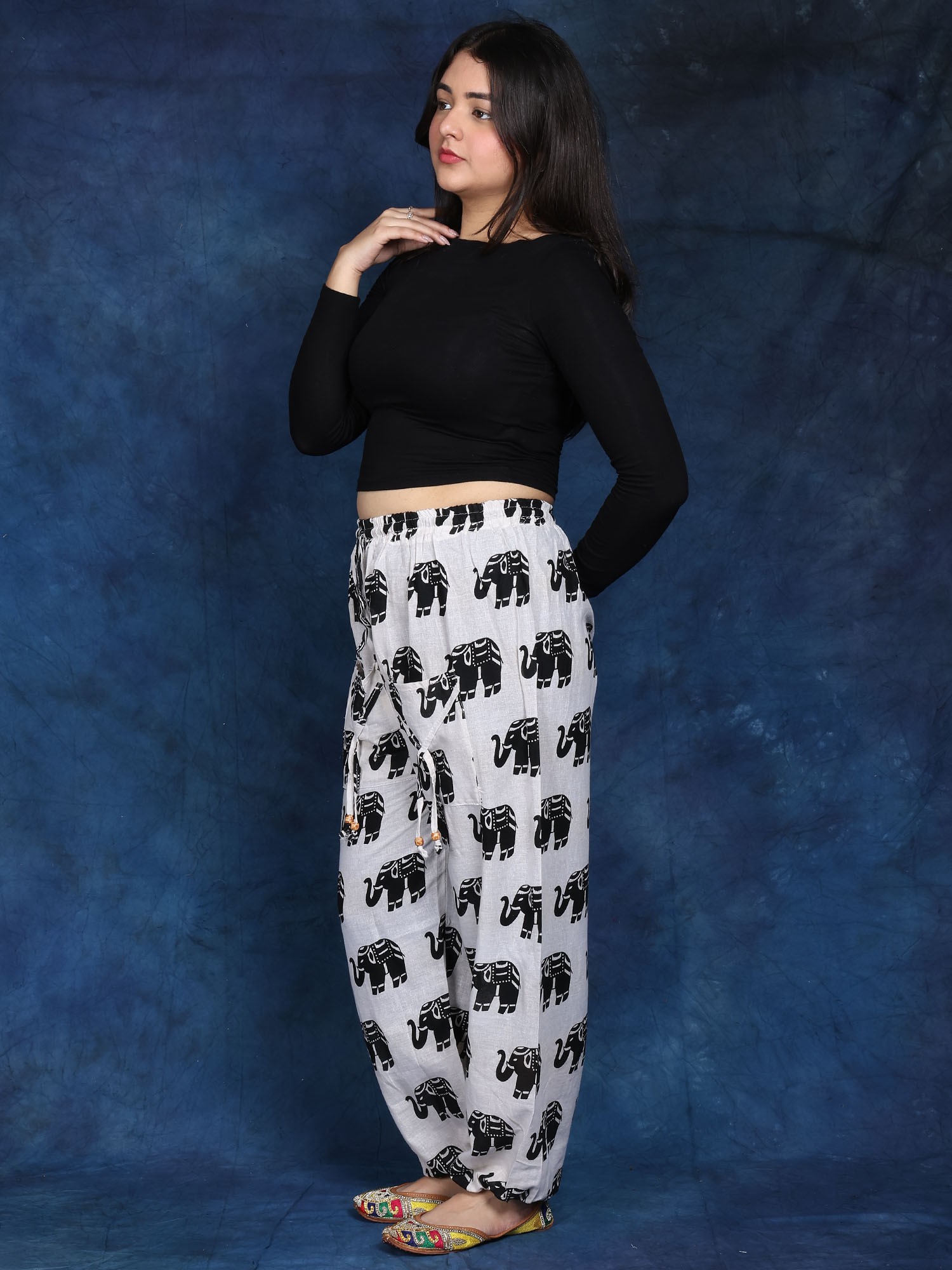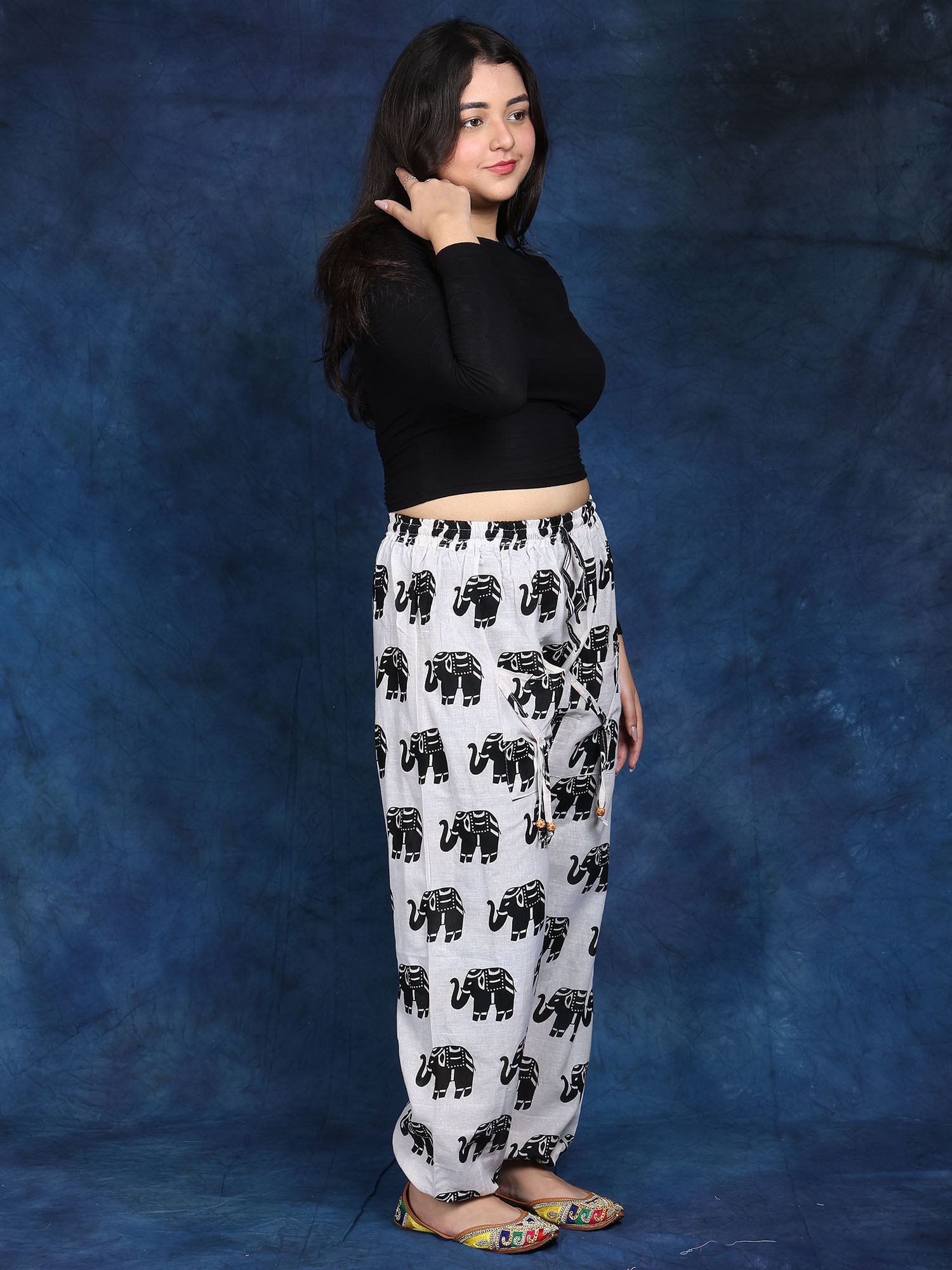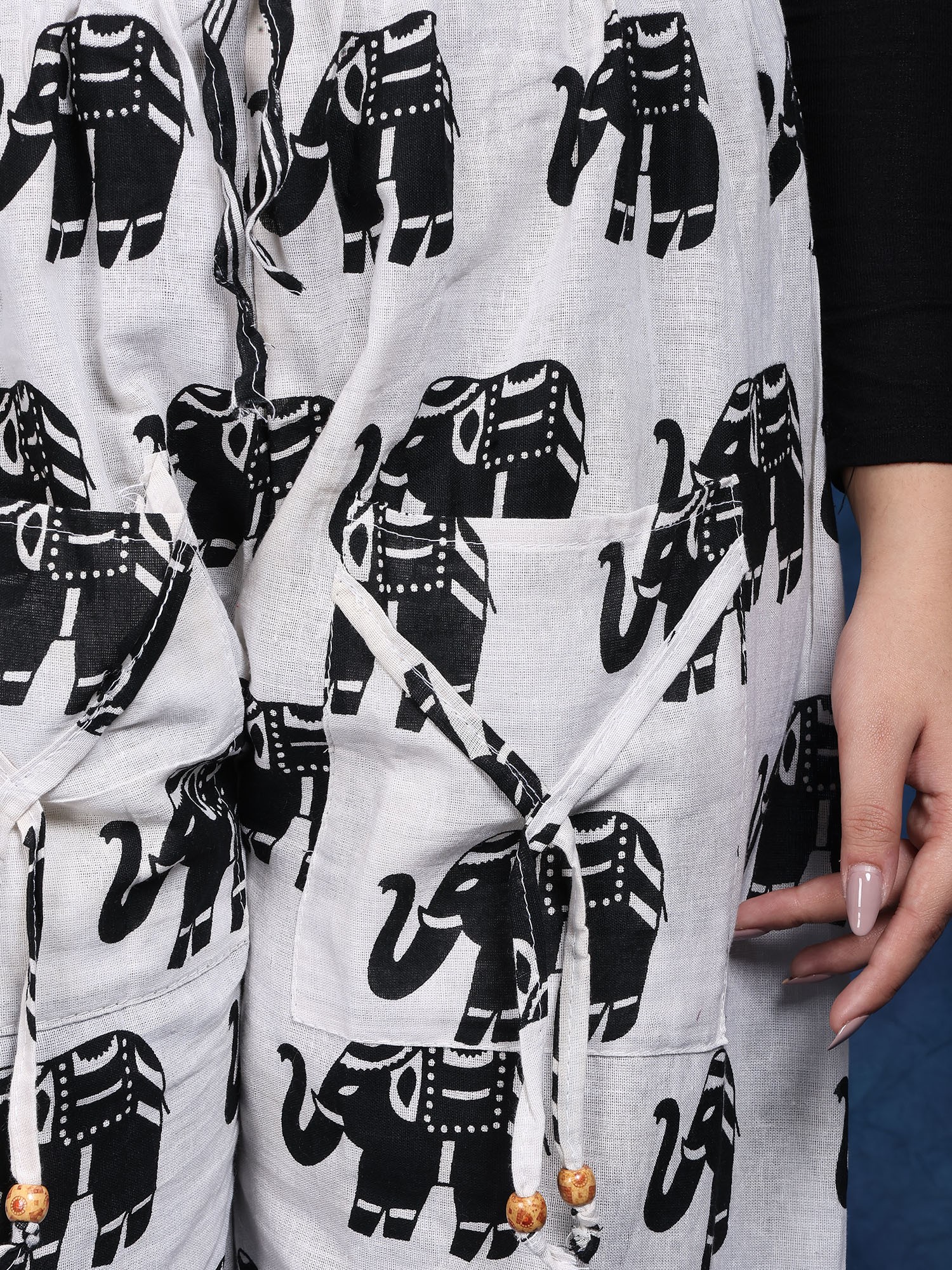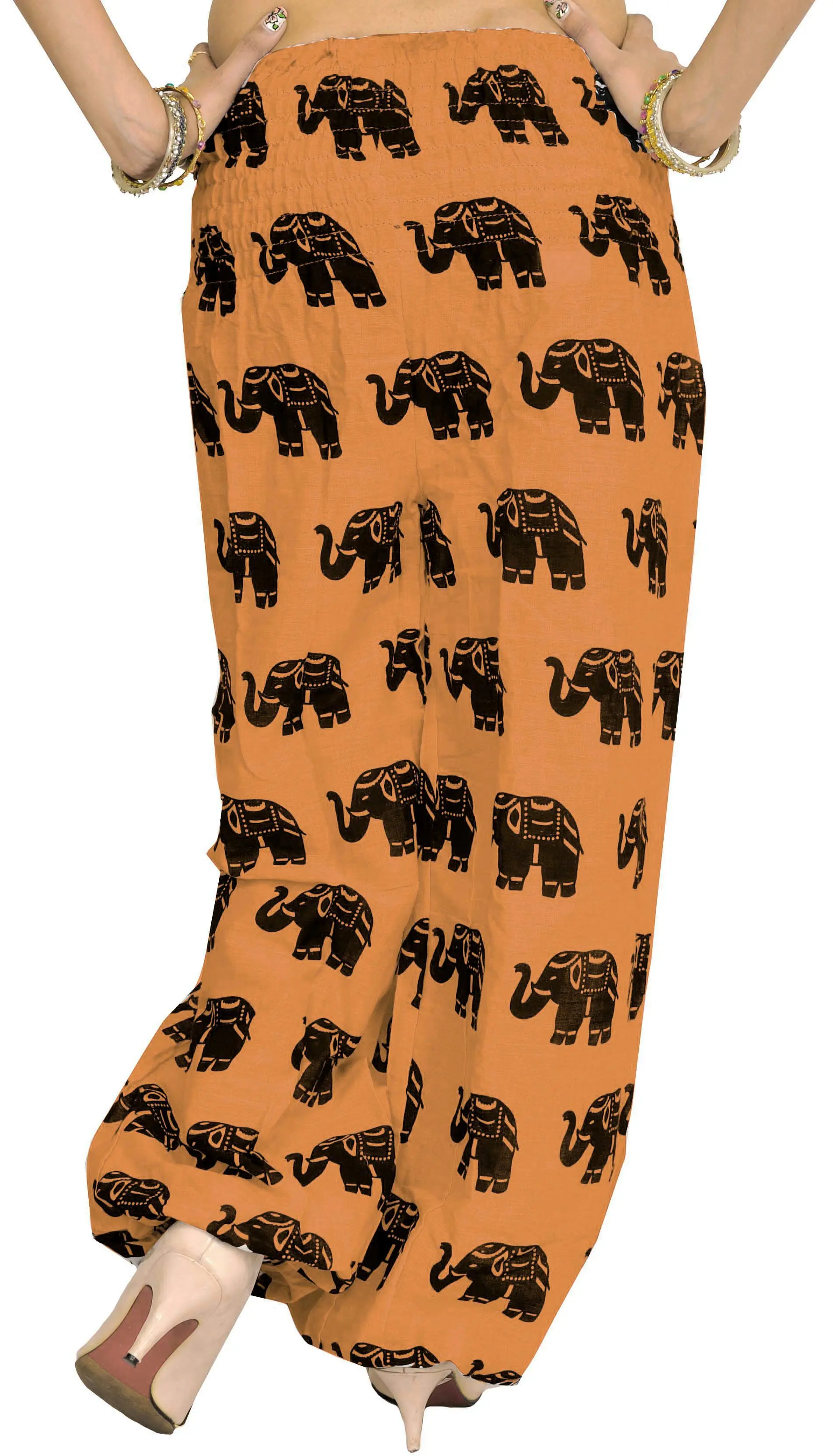According to an ancient treatise on Yoga, one should be at ease and wear loose, breathable clothing while practicing Yoga, to allow a free flow of blood and give the body ample space during the various asanas. Experience comfort and ease during your Yoga sessions in these yoga trousers, tailored with breathability and a touch of ethnic allure. The cotton trousers have a wide elastic to allow you comfort and come with pockets. Bold and contrasting elephant prints all over the trousers give them a beautiful traditional look, that will make your Yoga practices an enjoyable part of your day.