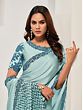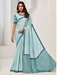 The saree's enchanting pale blue hue evokes a sense of serene elegance. This calming shade is beautifully offset by the deeper teal of the Zardosi work and the zig-zag pattern on the pallu (decorative end piece), creating a striking yet harmonious contrast. The rich texture of the crepe satin silk provides a luxurious feel against the skin, enhancing the overall comfort and elegance of this stunning piece.