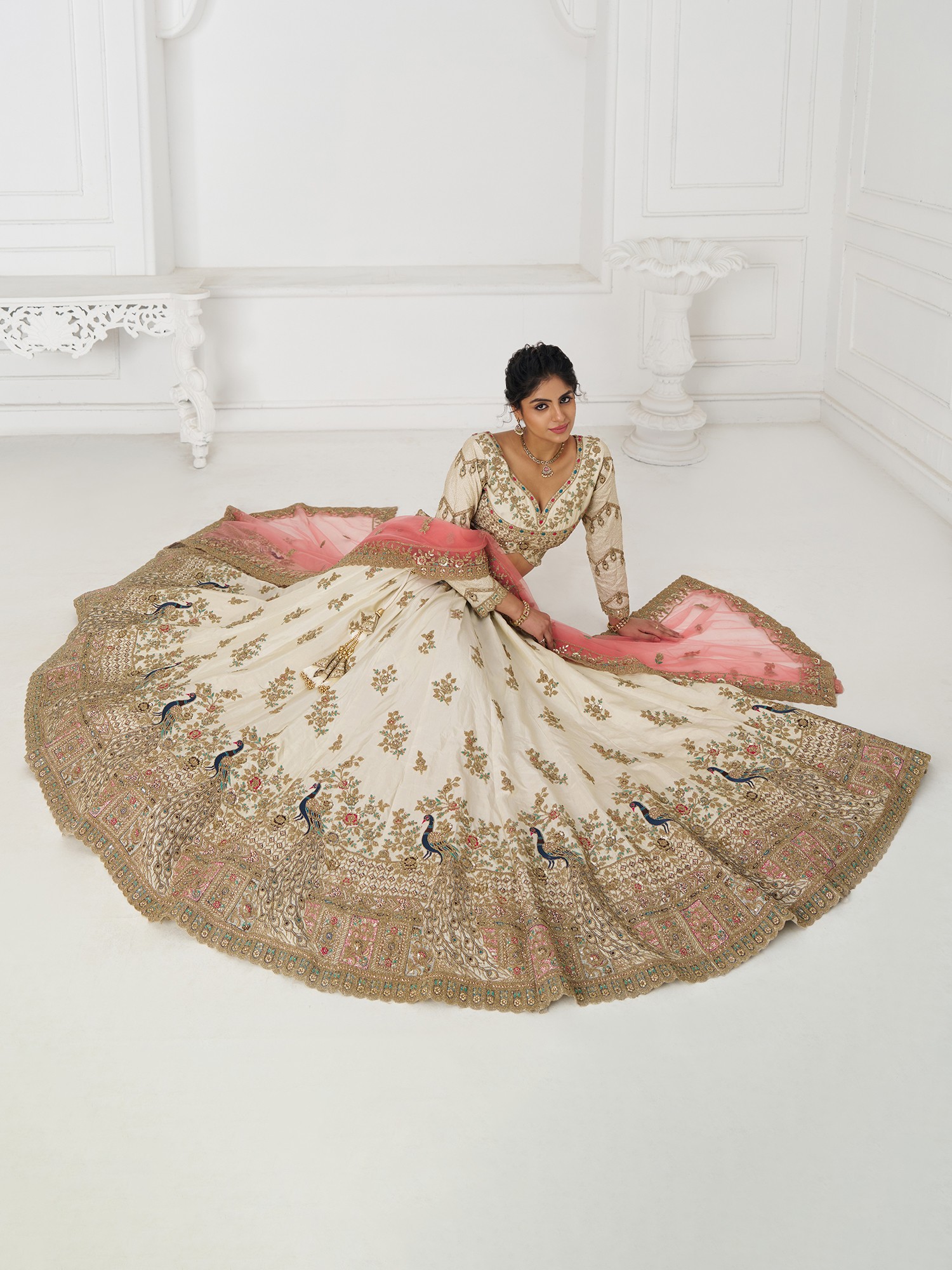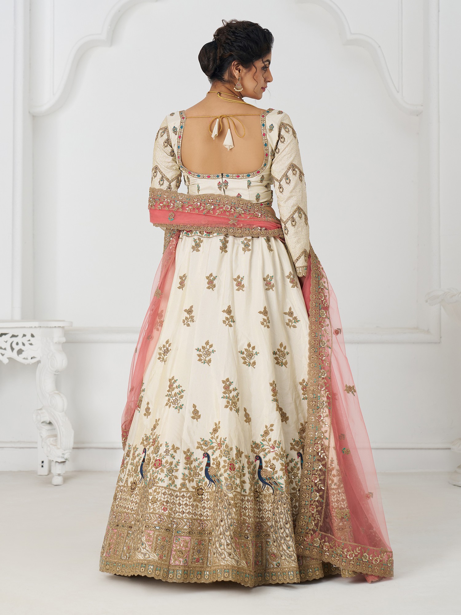 Silk Sequins And Peacock Embroidered Lehenga Choli With Net Dupatta