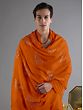 The embroidery is done with golden threads, the gold color shines magnificently on the plain white background and the embroidery automatically comes into focus. This shawl is a divine piece of clothing that allows the devotee to become wrapped in the safe embrace of the name of Lord Shiva.