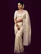 Wedding and Festive Wear Paper Satin Silk Saree with Swarovski and Scallop Zardozi Embroidery in Elegant Traditional Designer Style