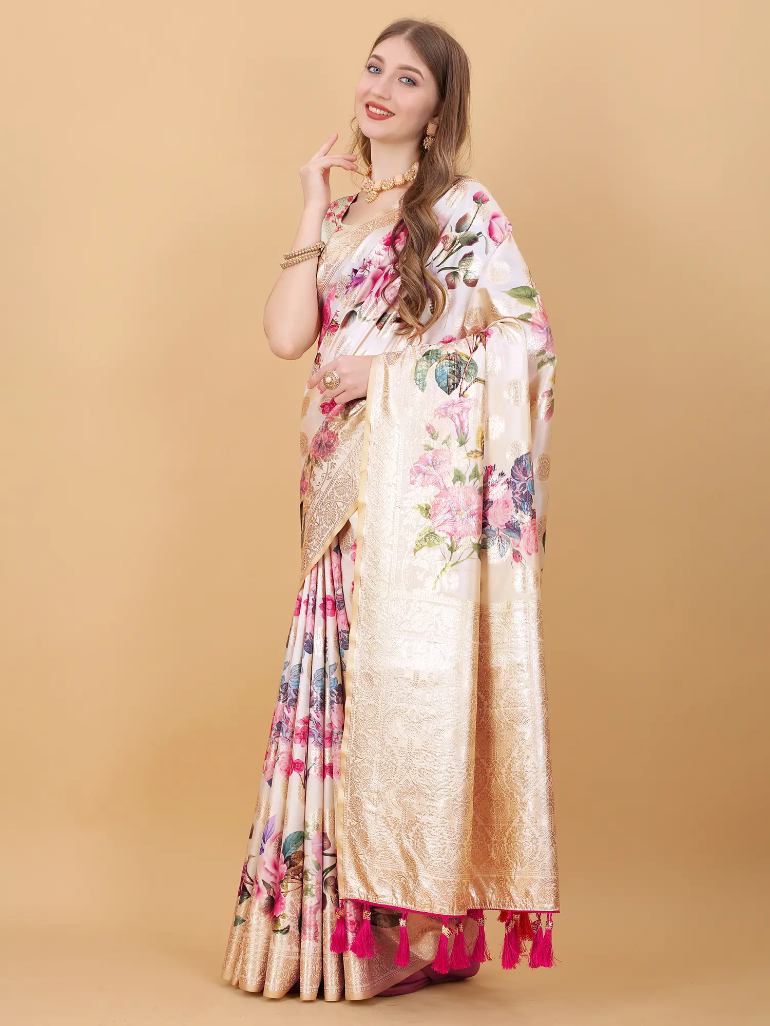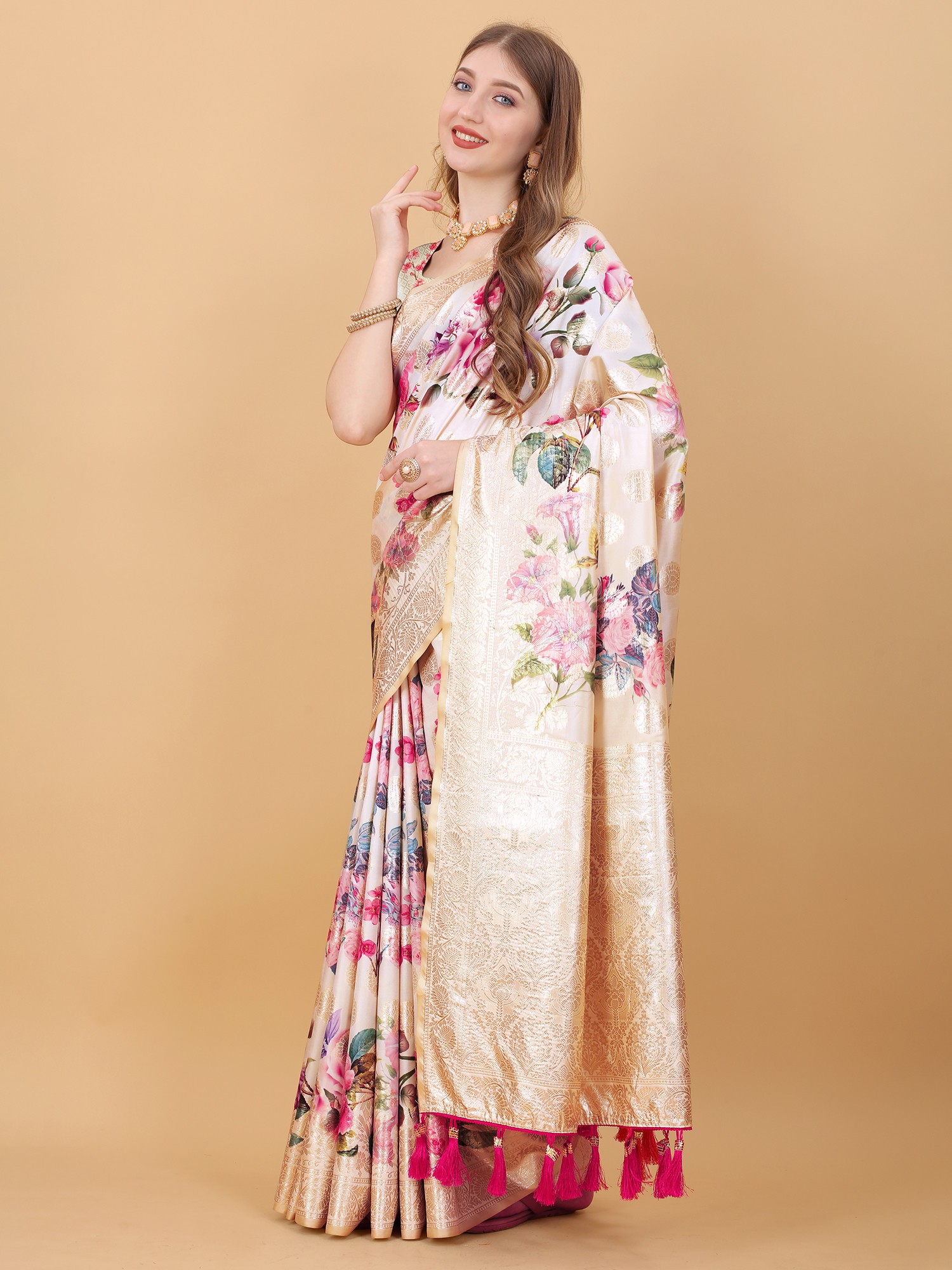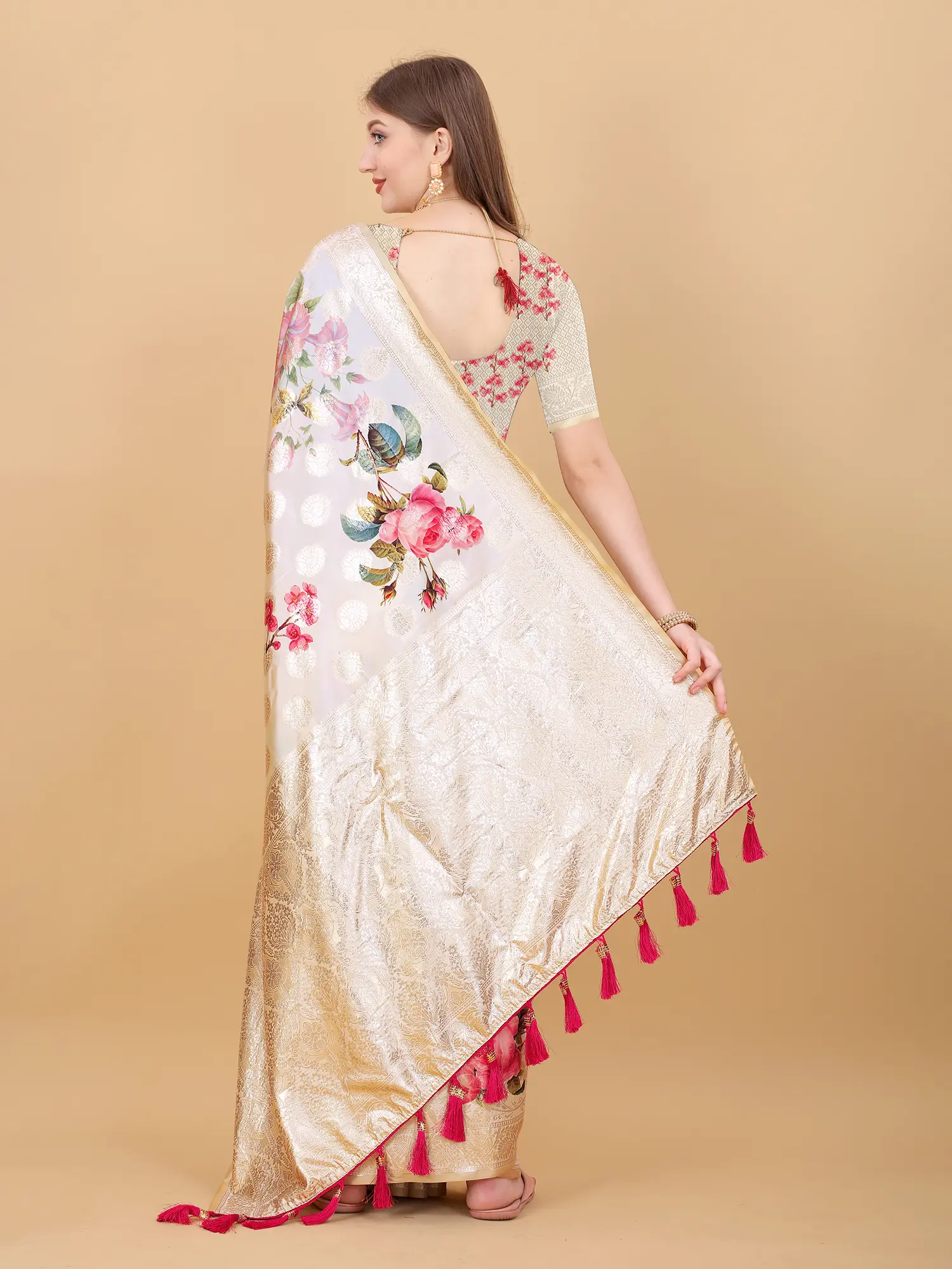 Sequins Weaving Silk Saree with Digital Print Blouse
