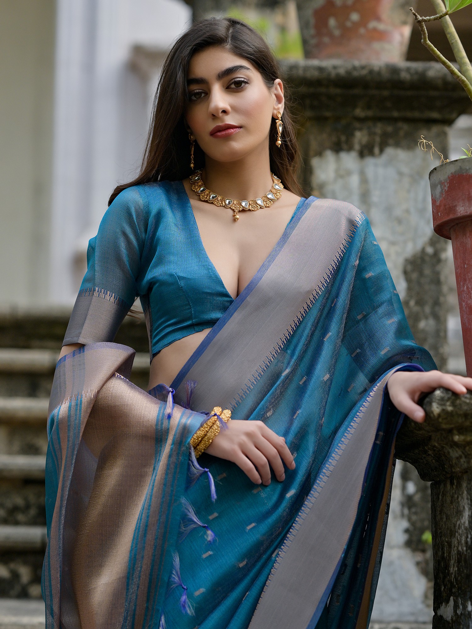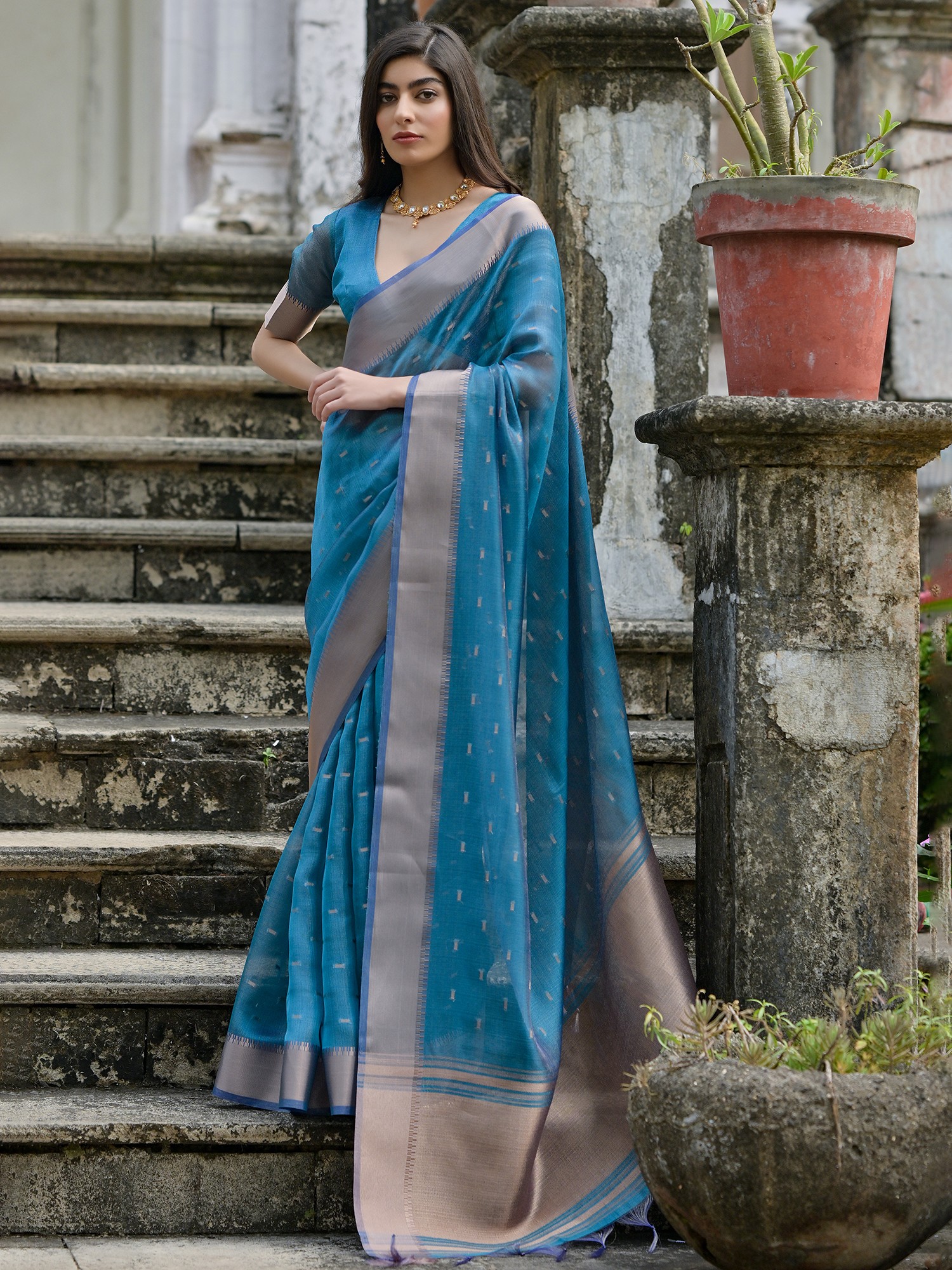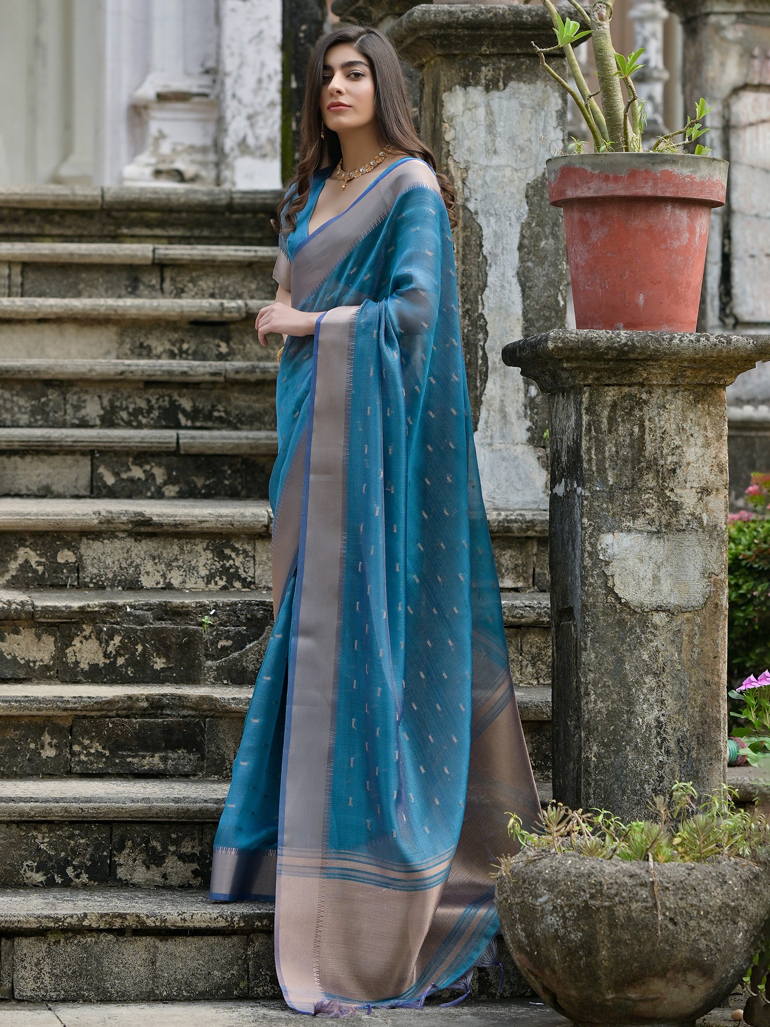 Designer Paisley Butti Silk Saree With Blouse For Wedding Occasion