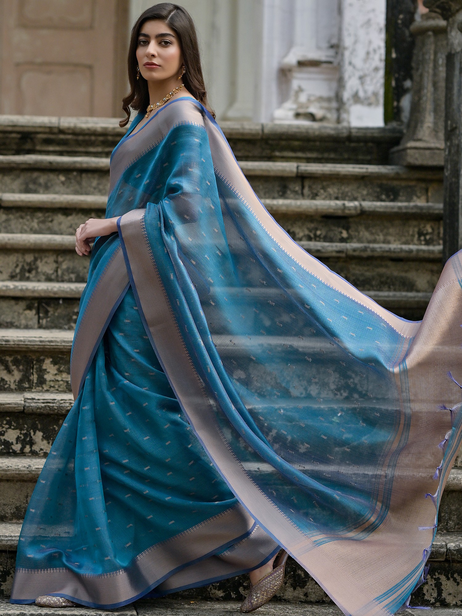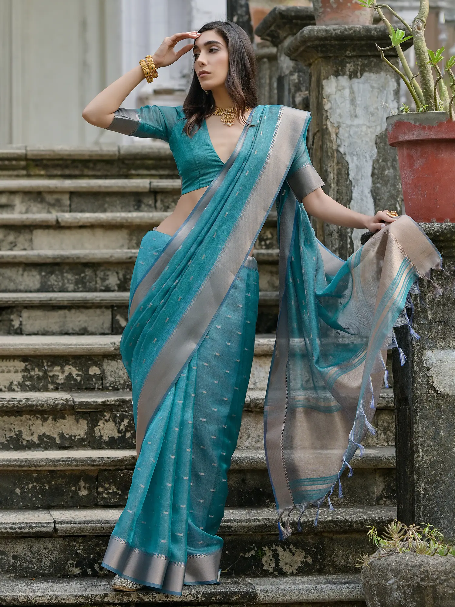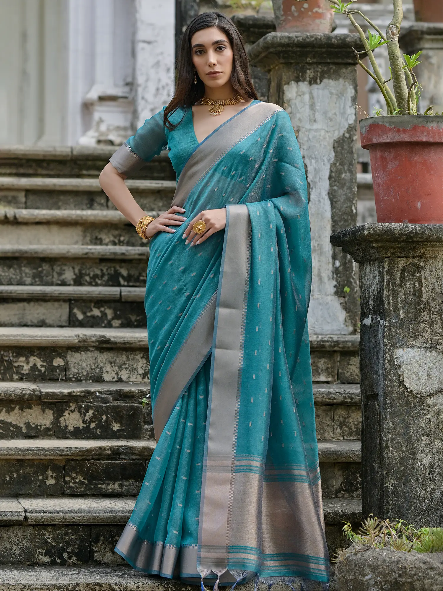 Designer Paisley Butti Silk Saree With Blouse For Wedding Occasion