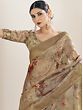 Win hearts with your effortless regalia in this digitally printed organza saree. The delicate canvas of the saree is covered in enchanting floral prints, of blooming flower bunches that add a natural beauty to the look. The border is embellished with Zari that elevates the luxuriant feel of organza against your skin and crafts a drape fit for queens.