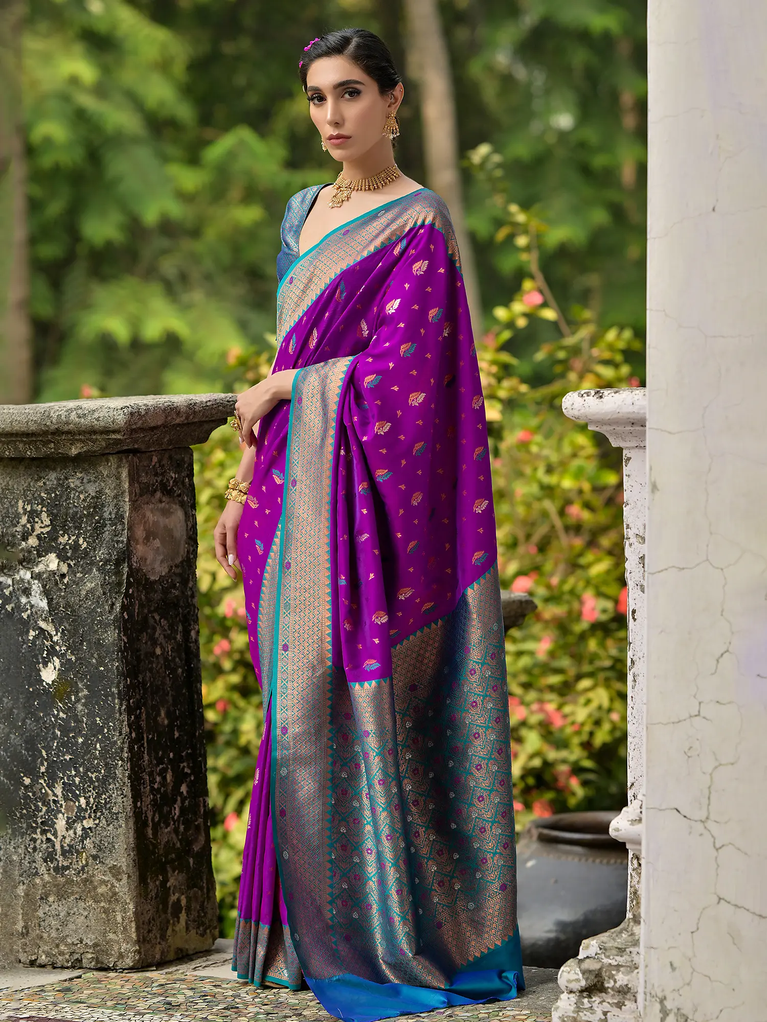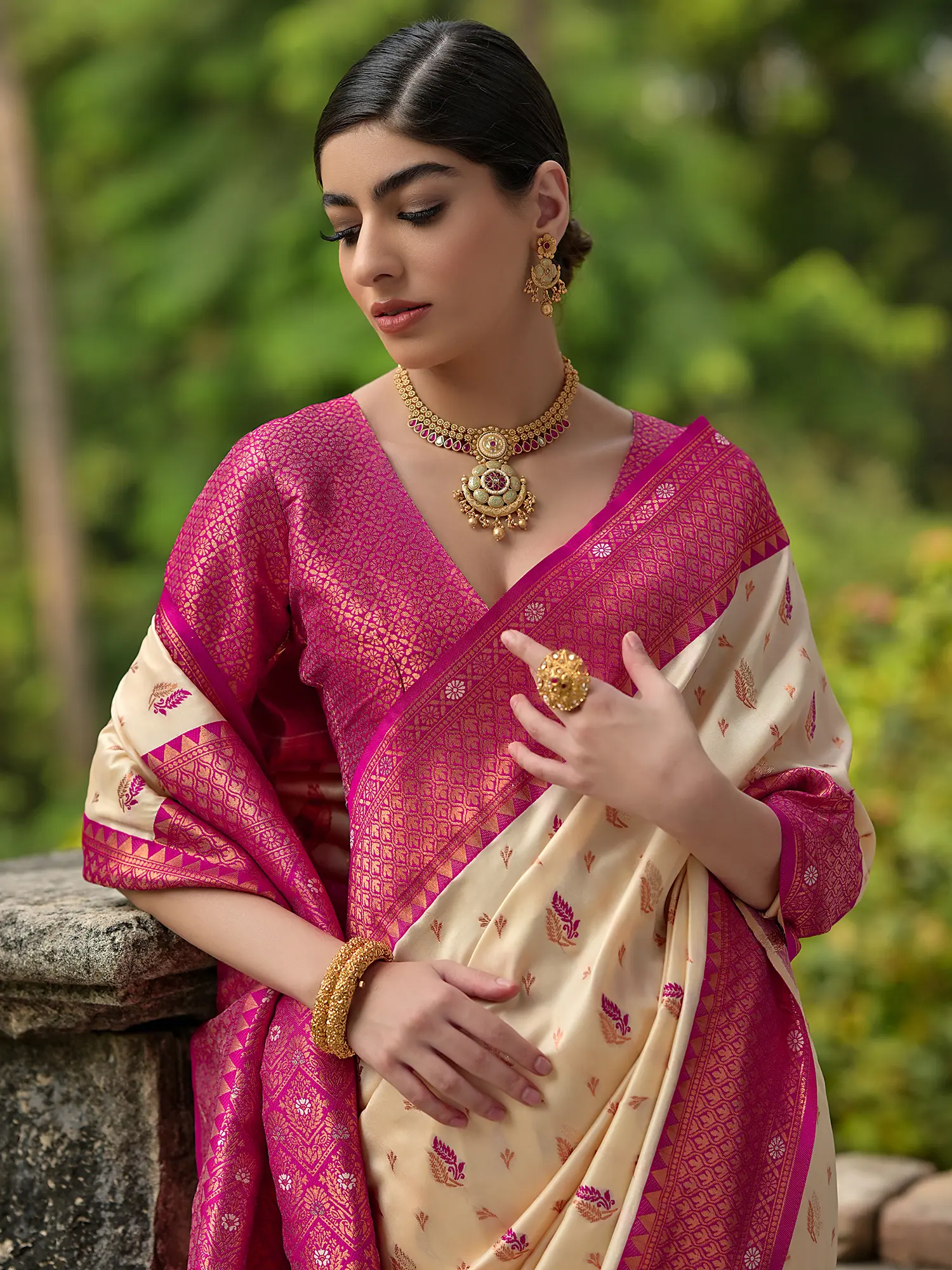 Art Silk Banarasi Saree with All-Over Brocaded Floral Jaal