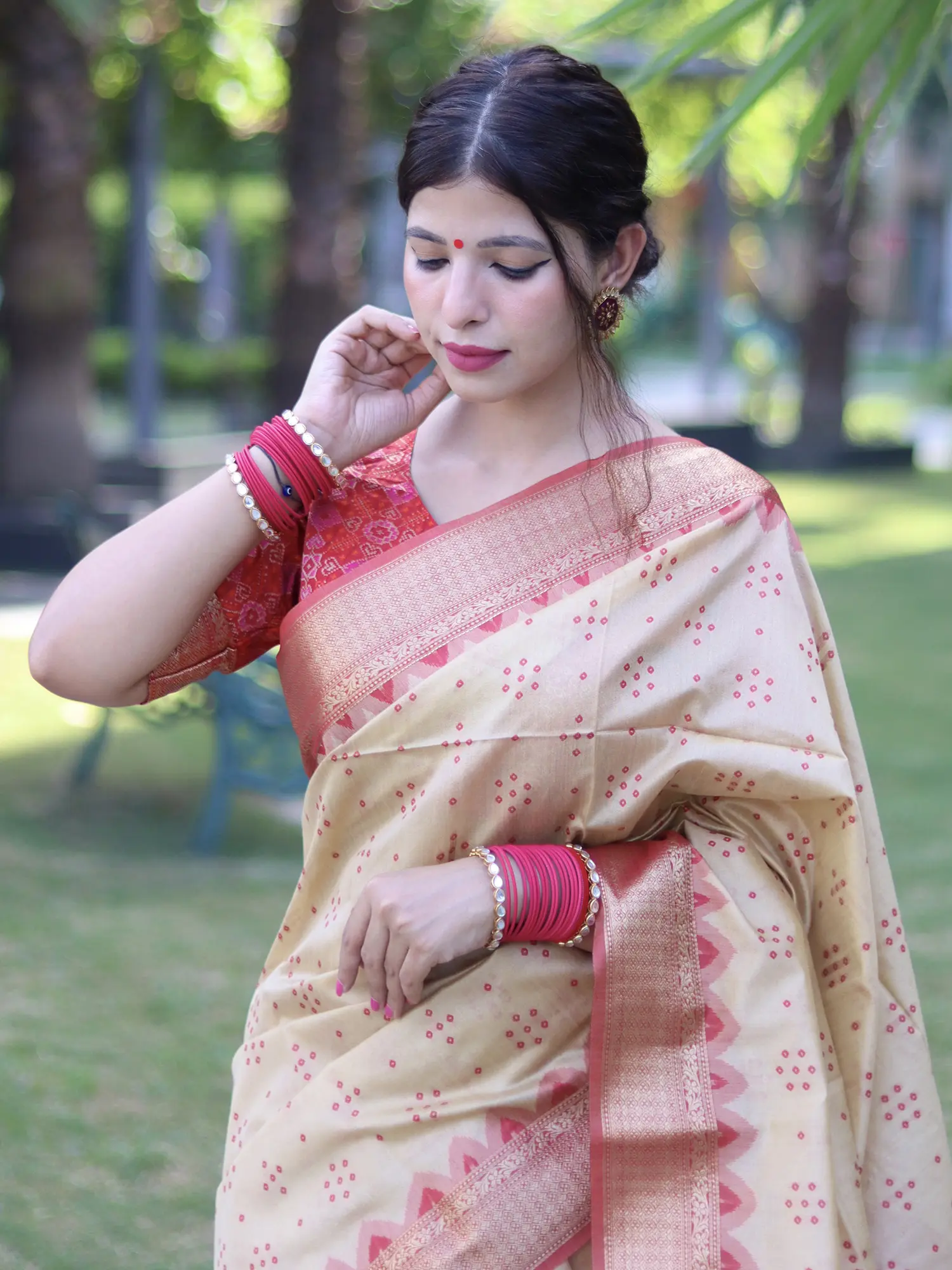 Bandhani Gharchola Saree with Zari Weave and Tie-Dye Motifs
