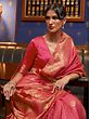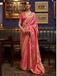 Zig-Zag Design Pure Satin Woven Silk Saree With Peacock Border And Zari Buttas