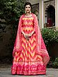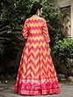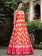Zig-Zag Pattern Digital Print Flared Elegant Wedding Wear Soft Dola Silk Anarkali Gown With Dupatta