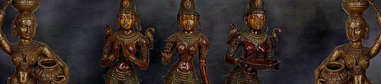 Exotic India has a wide variety of alluring statues of Apsaras made of Brass. With divine accomplishments in music and performing arts, these apsaras come in a great variety of sizes and postures and tempers, each meant to add to your home or office an otherworldly aura of seduction.